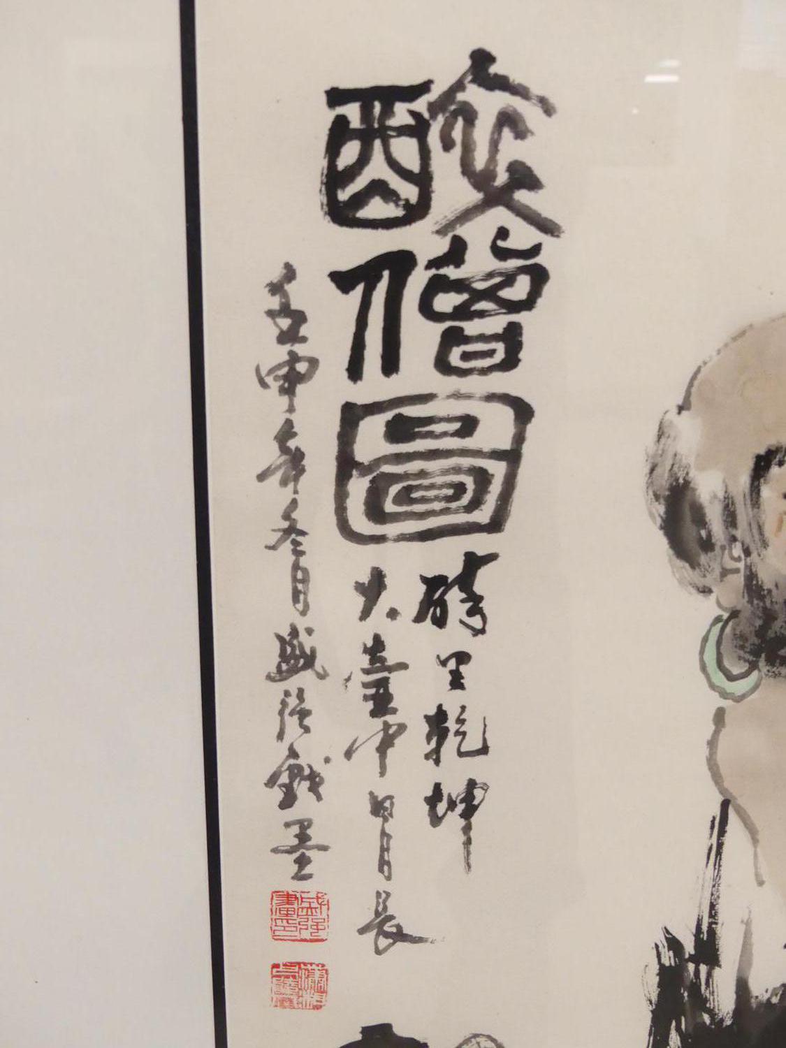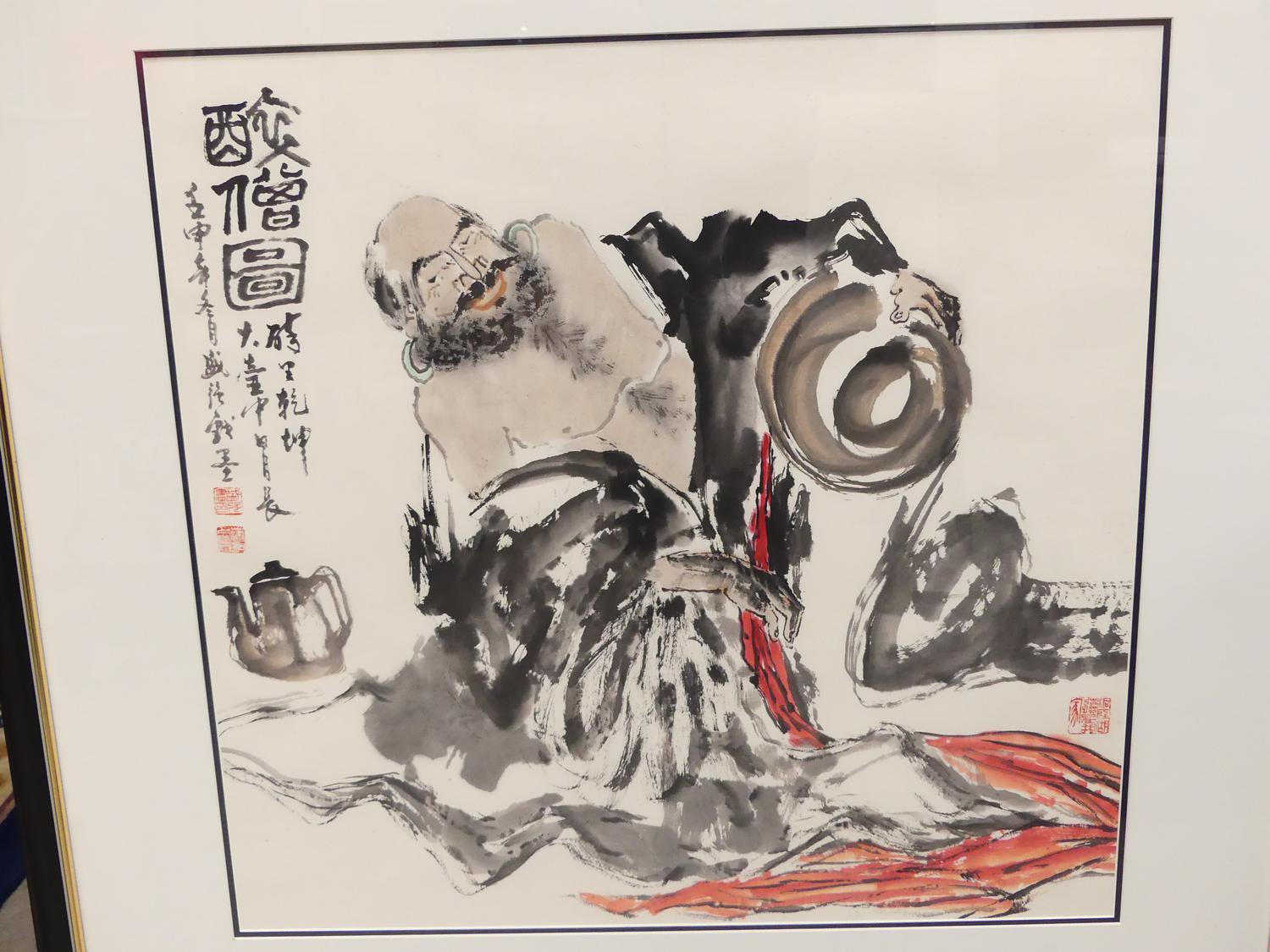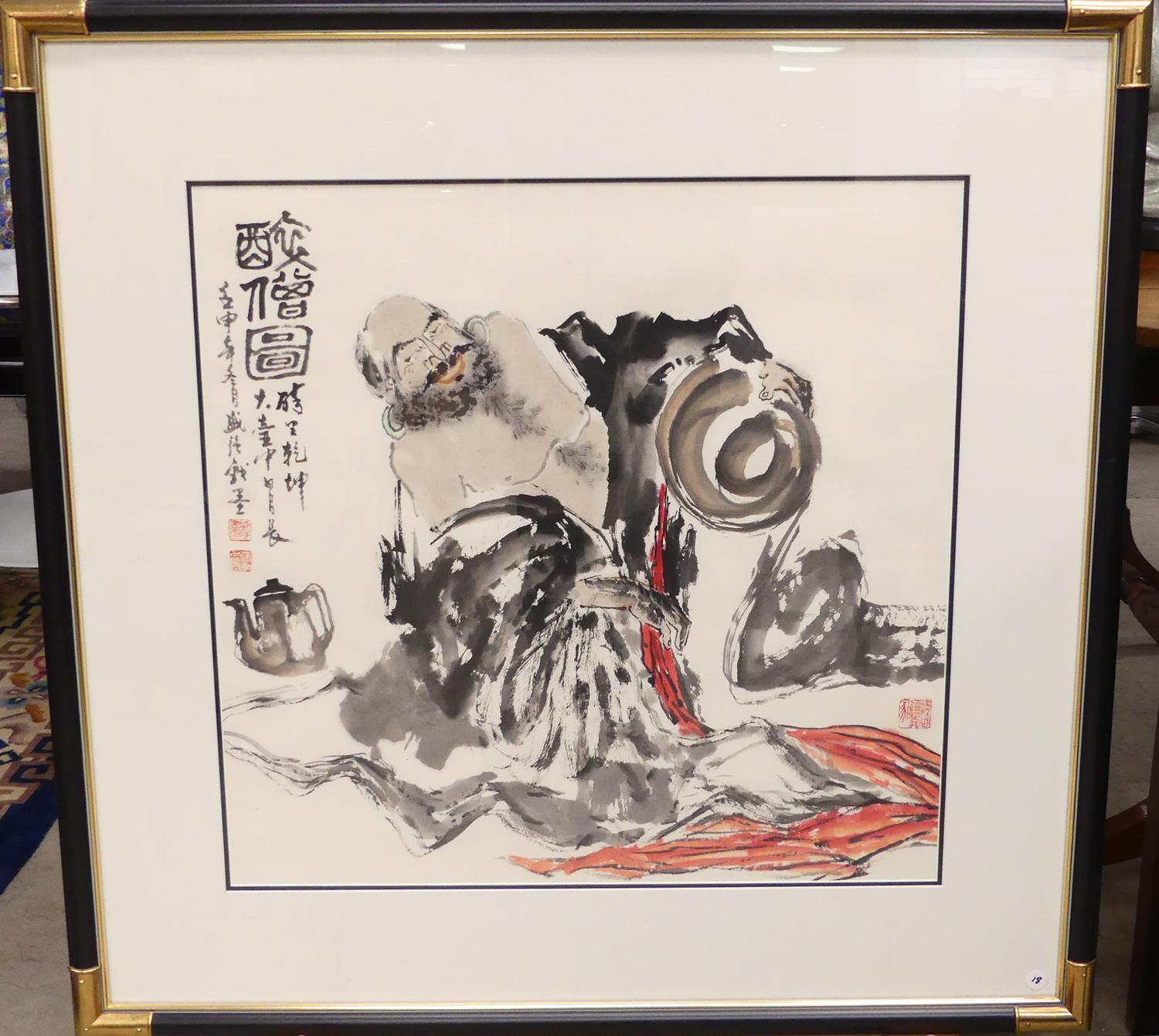 chinese watercolour and ink, 25" x 26", "seated figure"