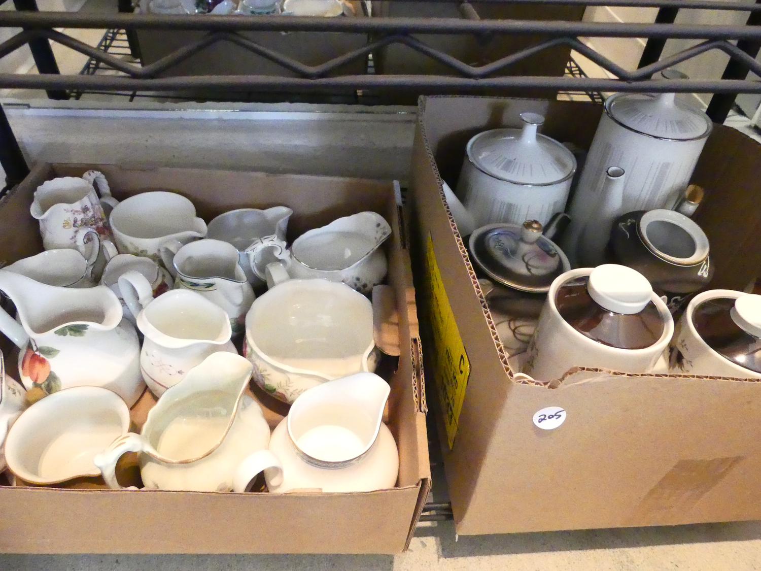 lot of tea pots, coffee pots and large group of creamers