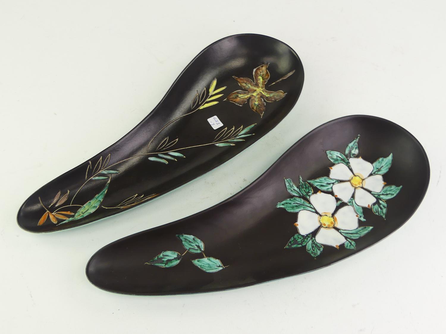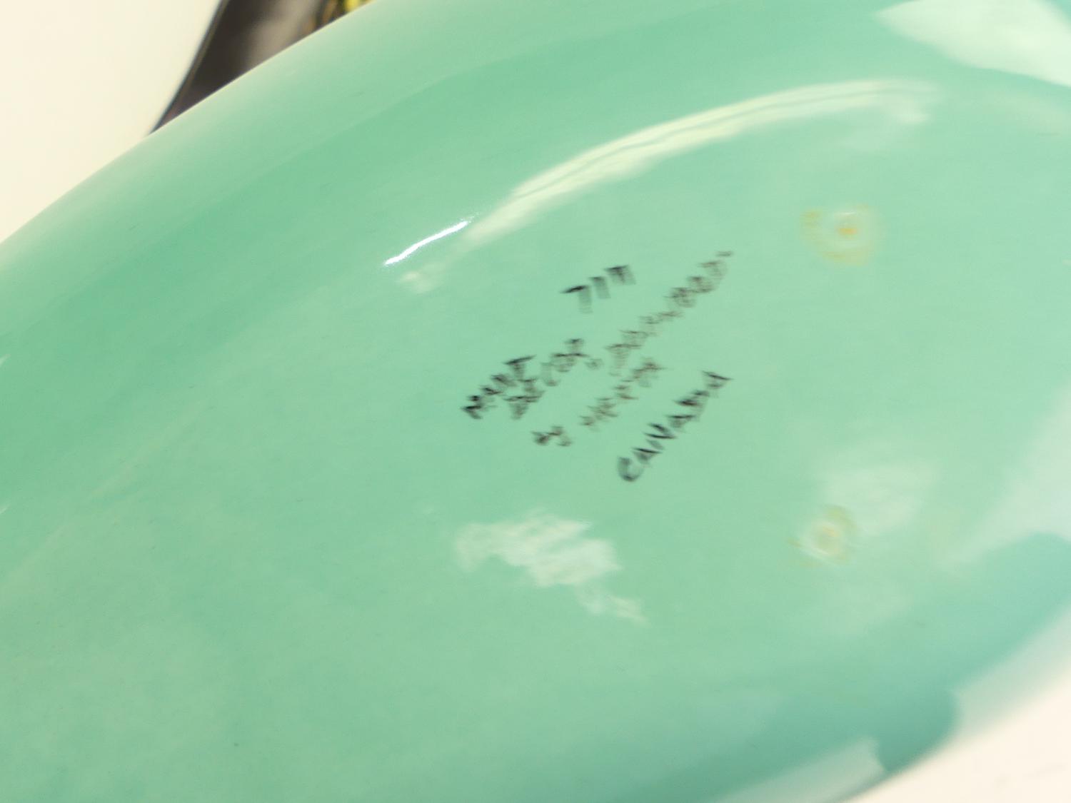 pair of canadian art pottery dishes by herta, length 15 1/2"