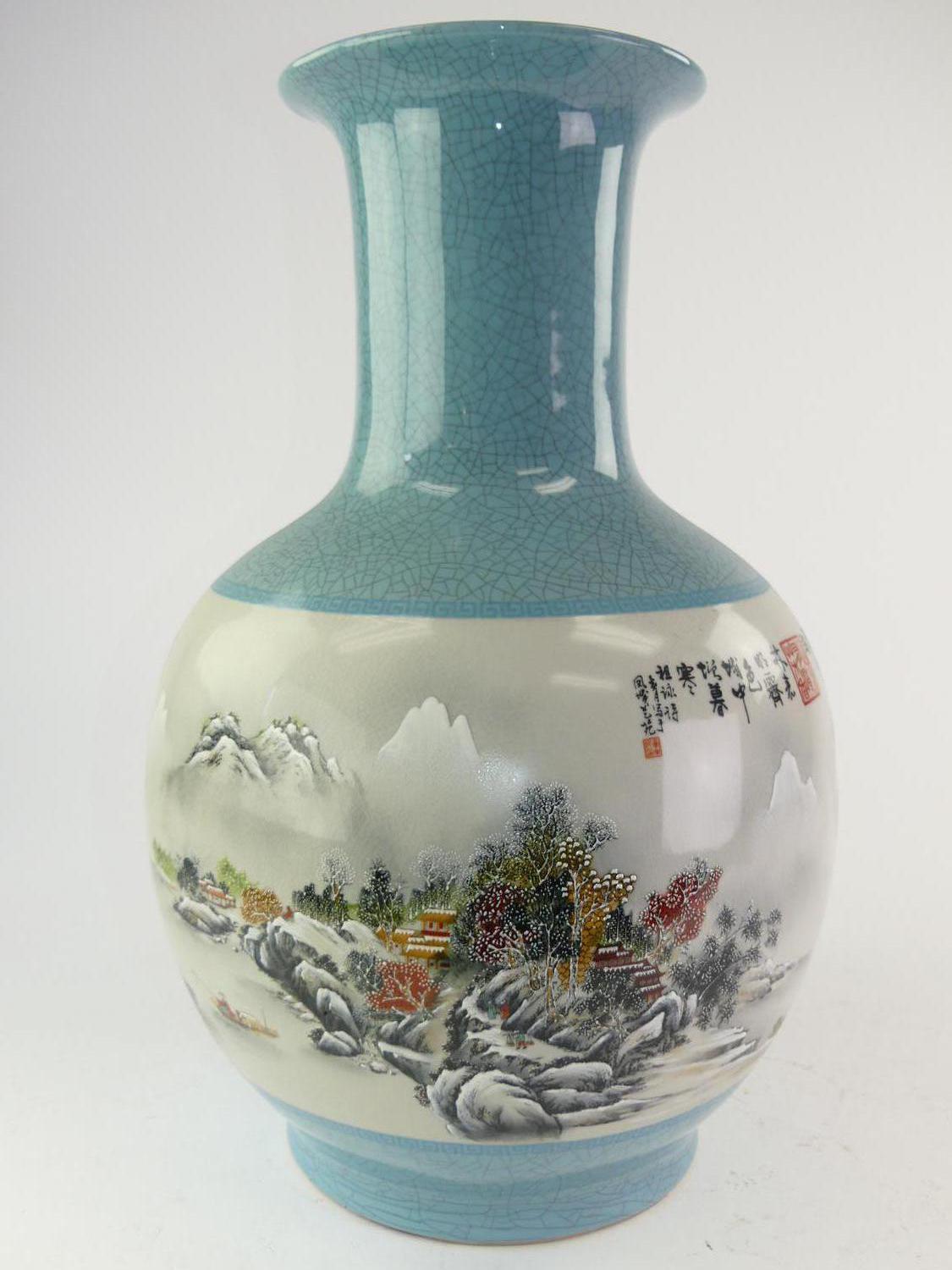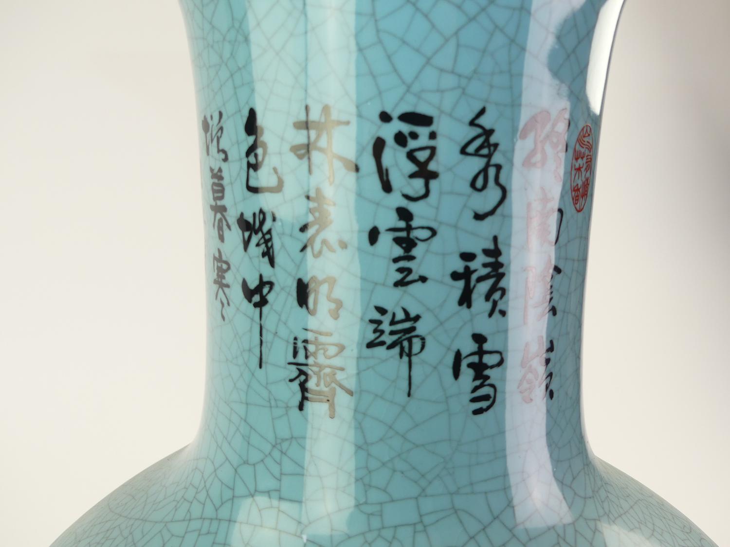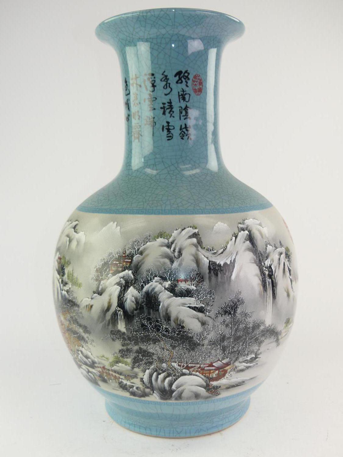 large chinese vase decorated with landscape and script, ht. 24 1/2"