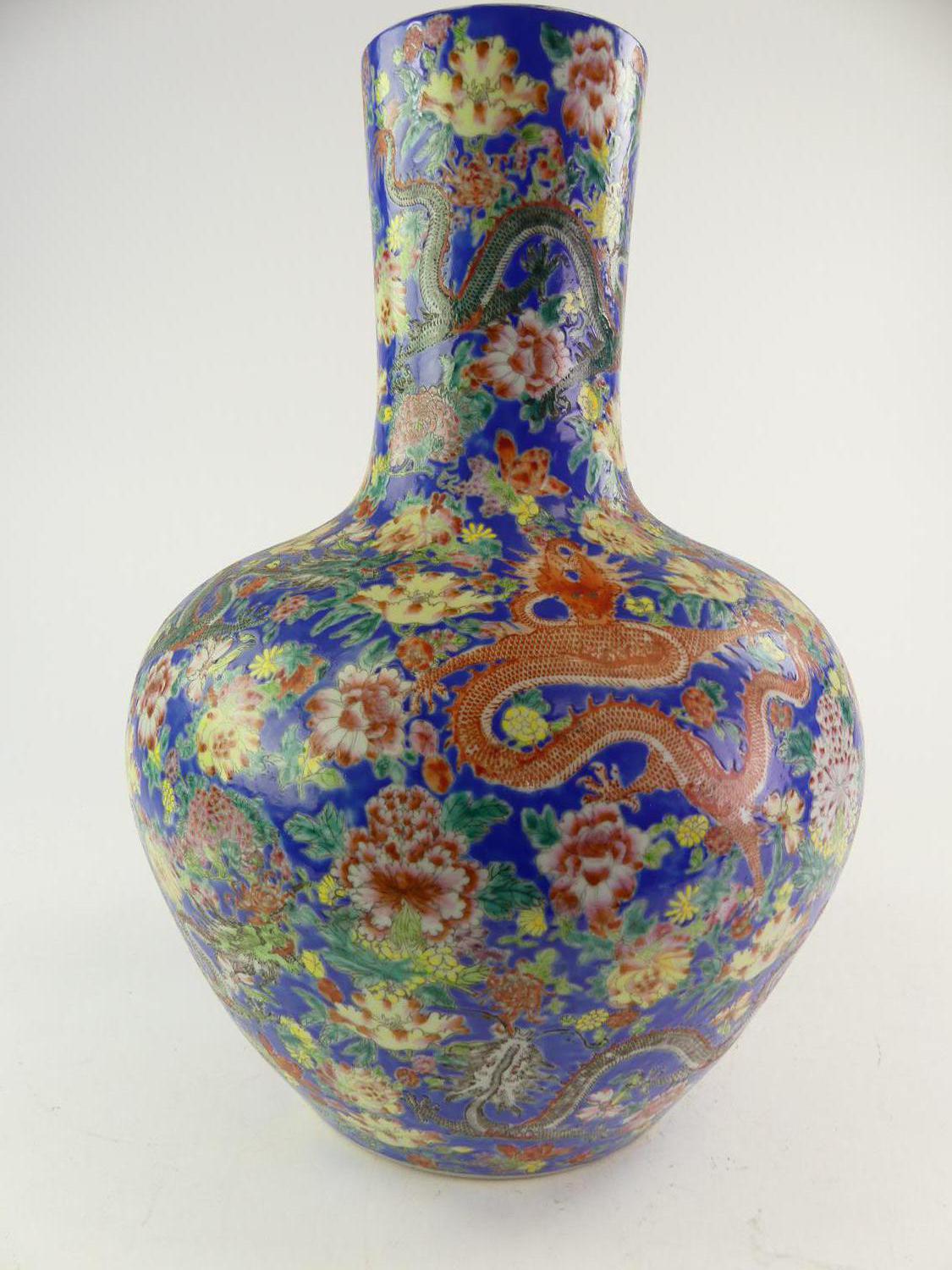 large chinese nine dragon porcelain vase, four character reign mark, ht. 24"