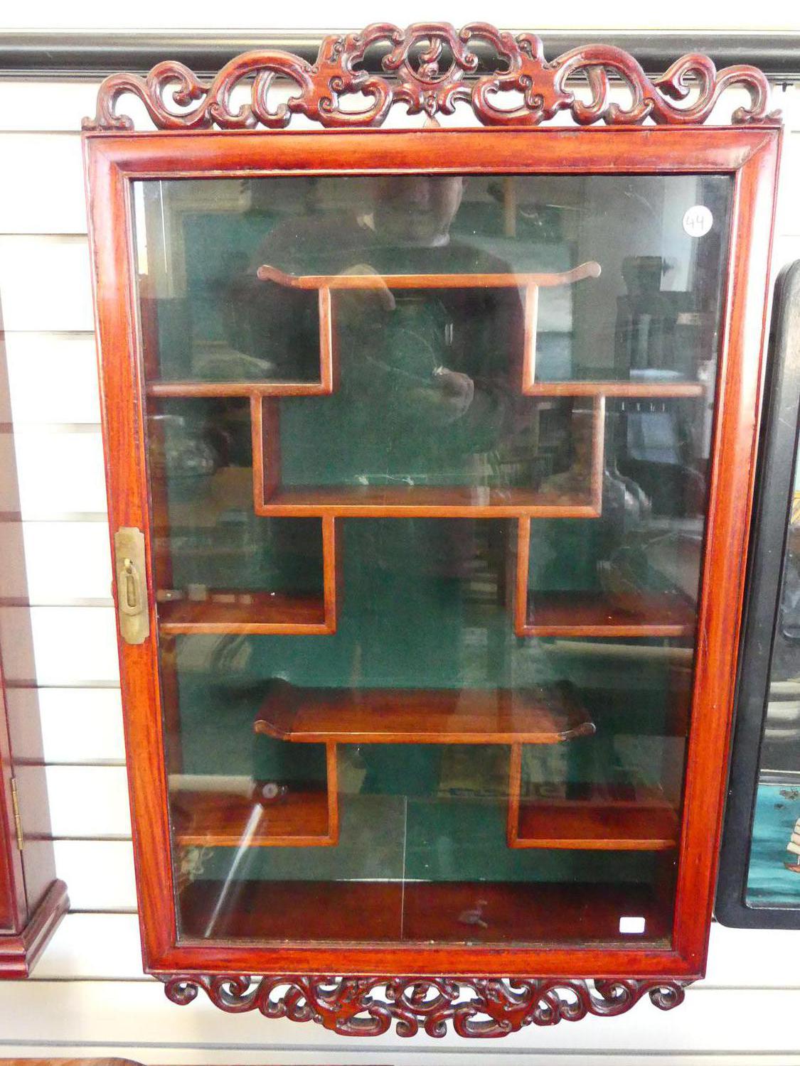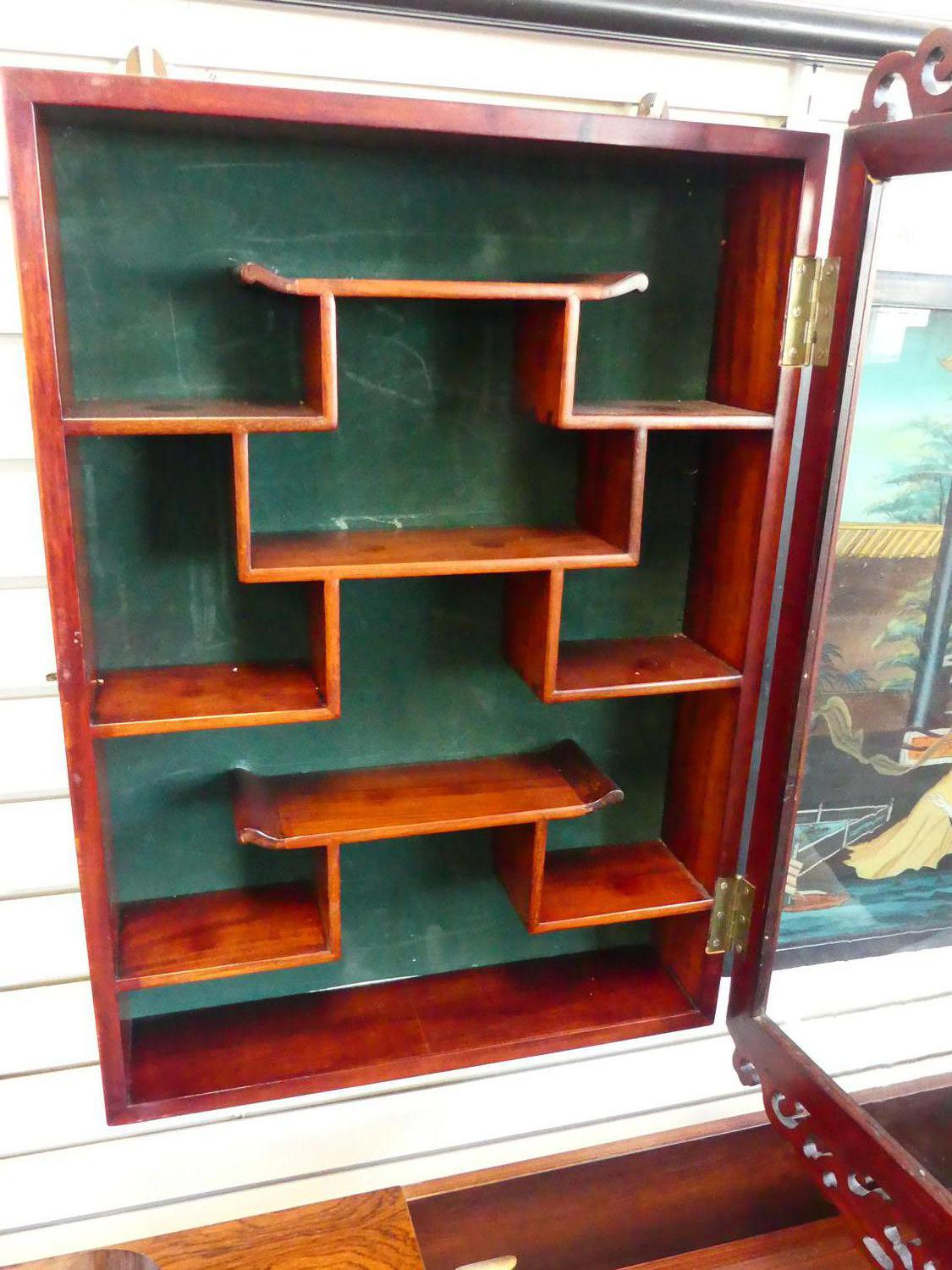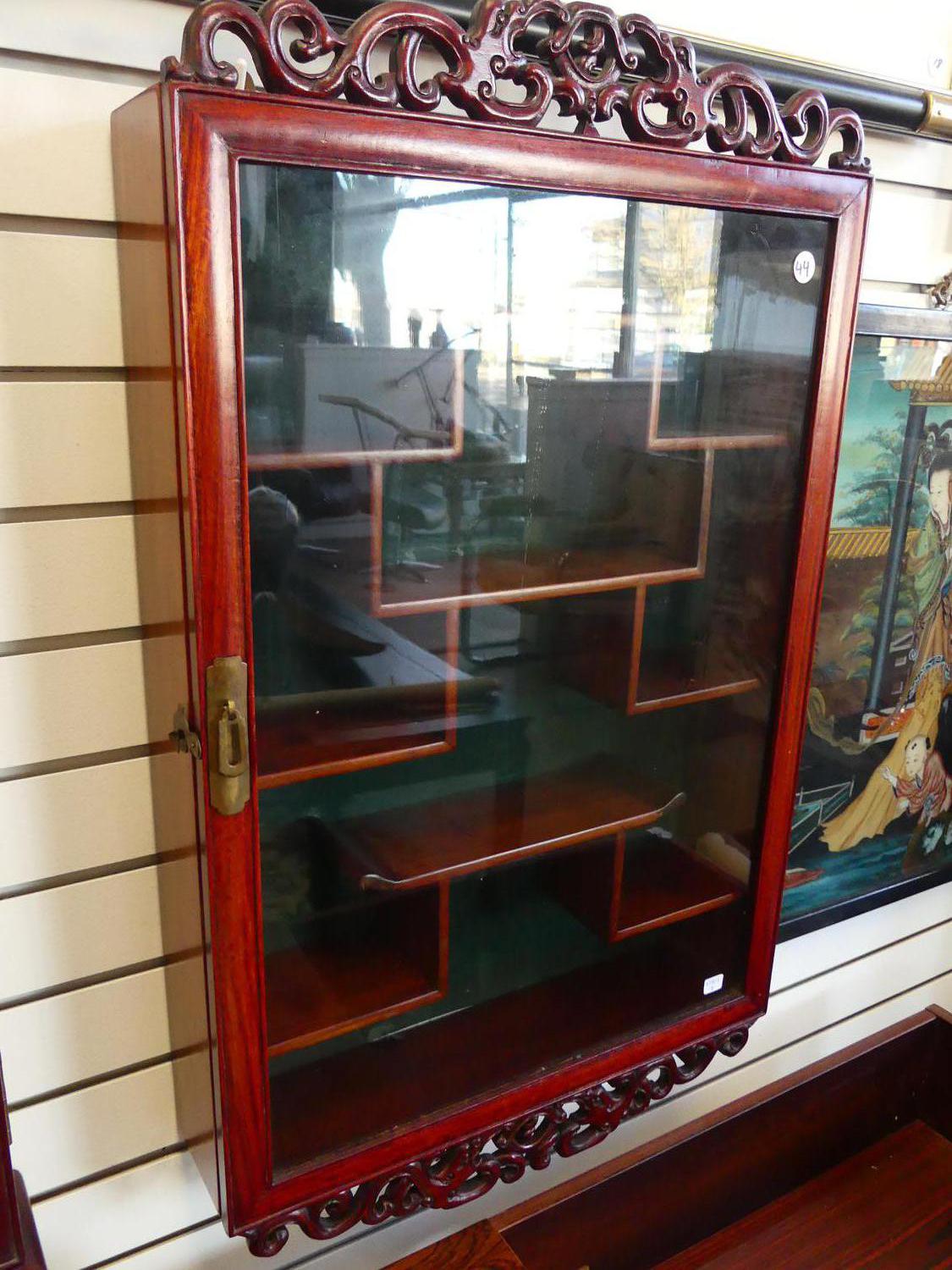chinese rosewood hanging curio cabinet, 30" x 18" x 4 1/2"