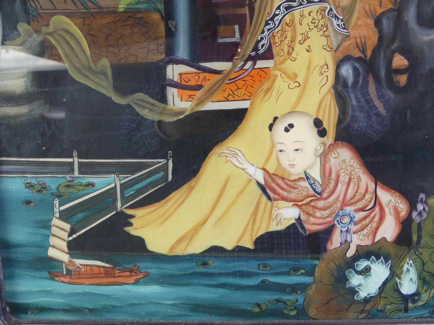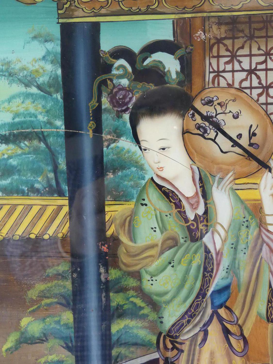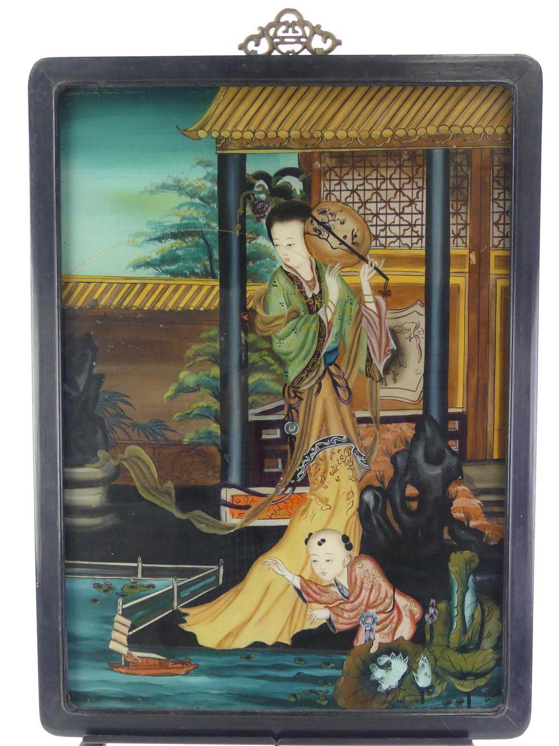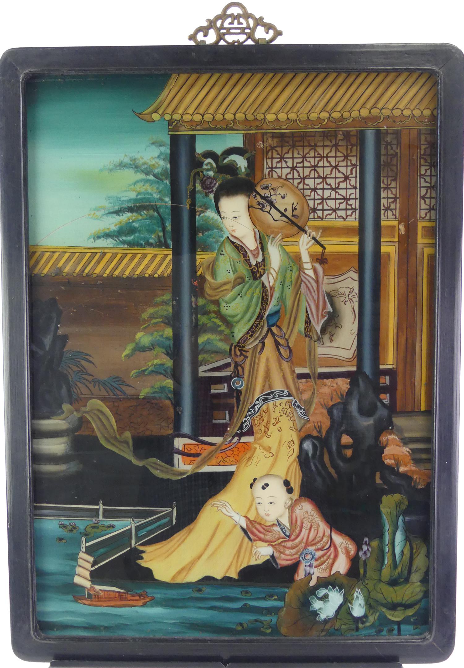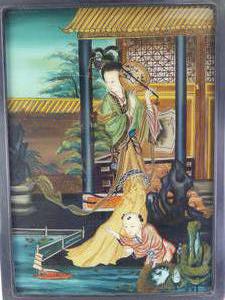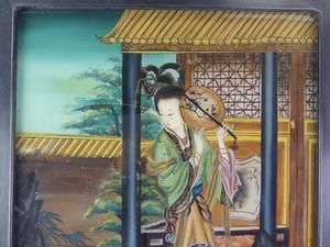 chinese reverse painting on glass panel, mid 20th century, 23 1/2" x 17 1/2"