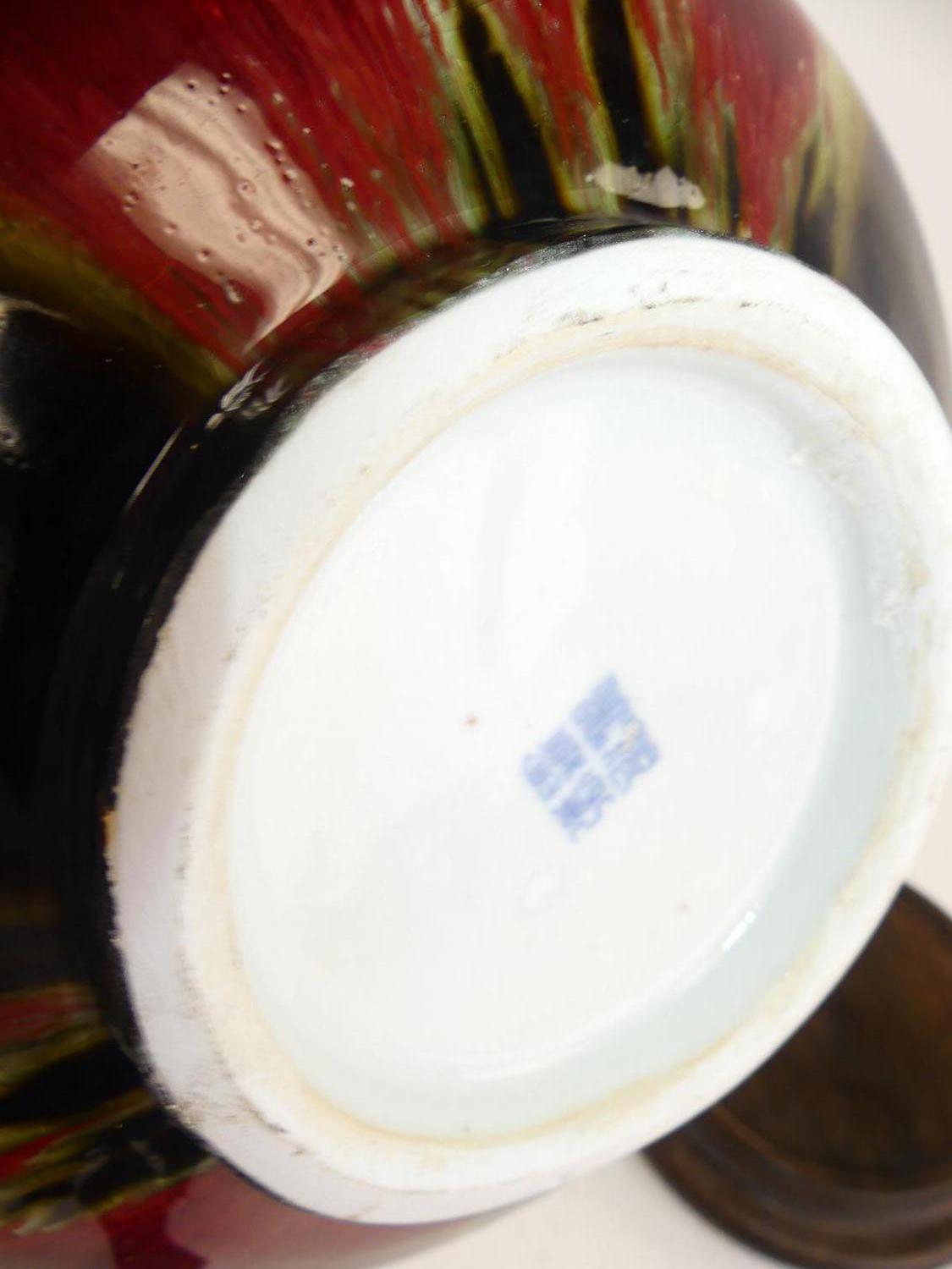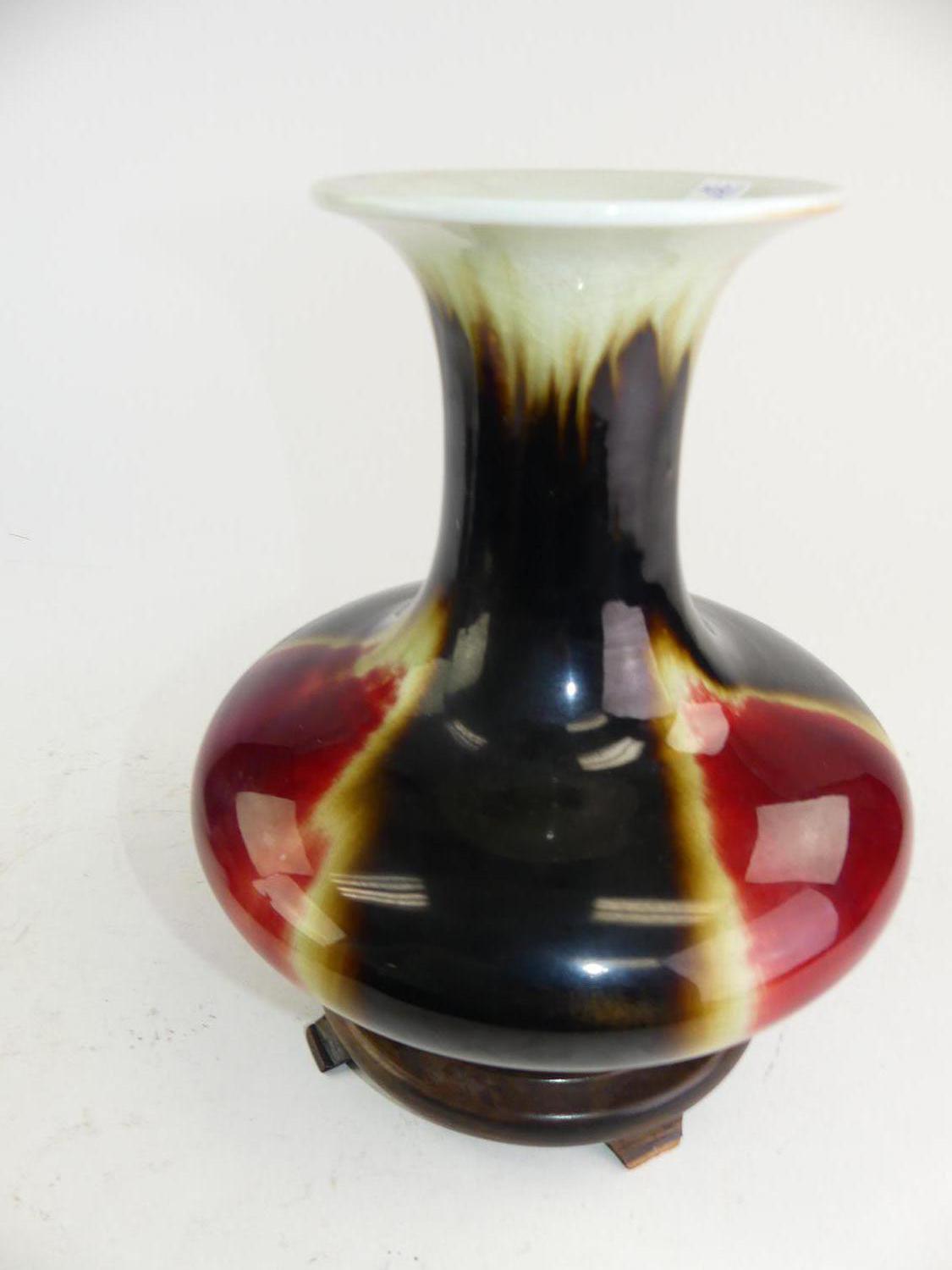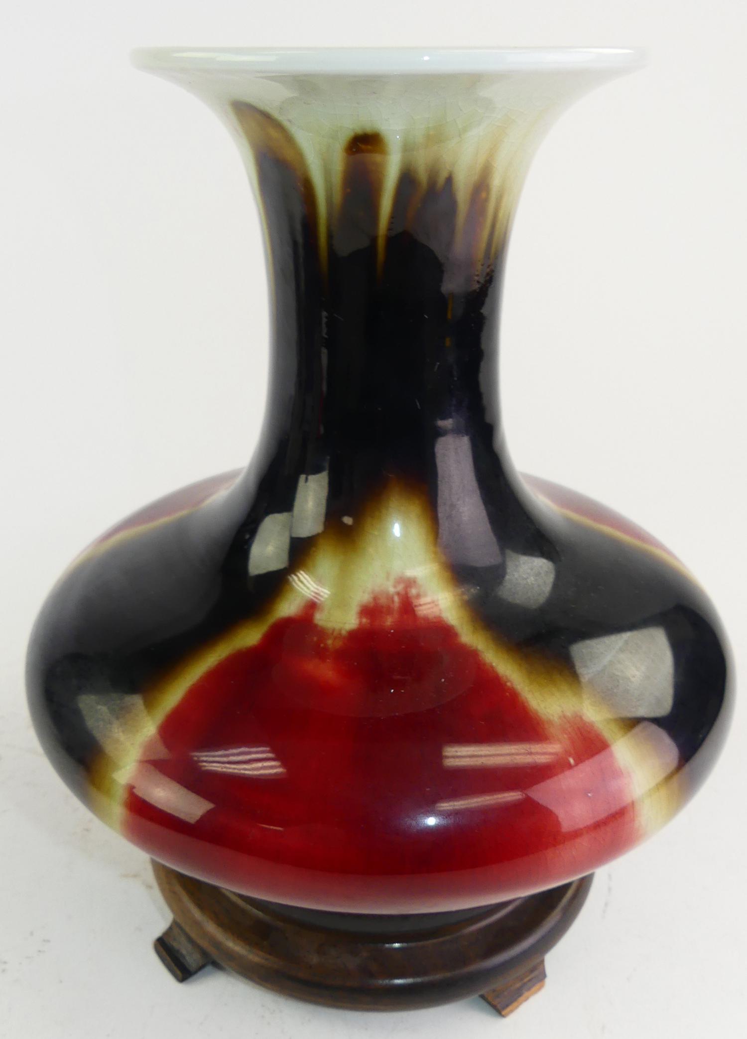 chinese oxblood flambe glazed vase on stand, ht. 11 1/2"