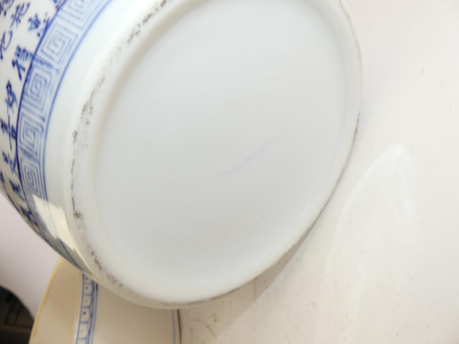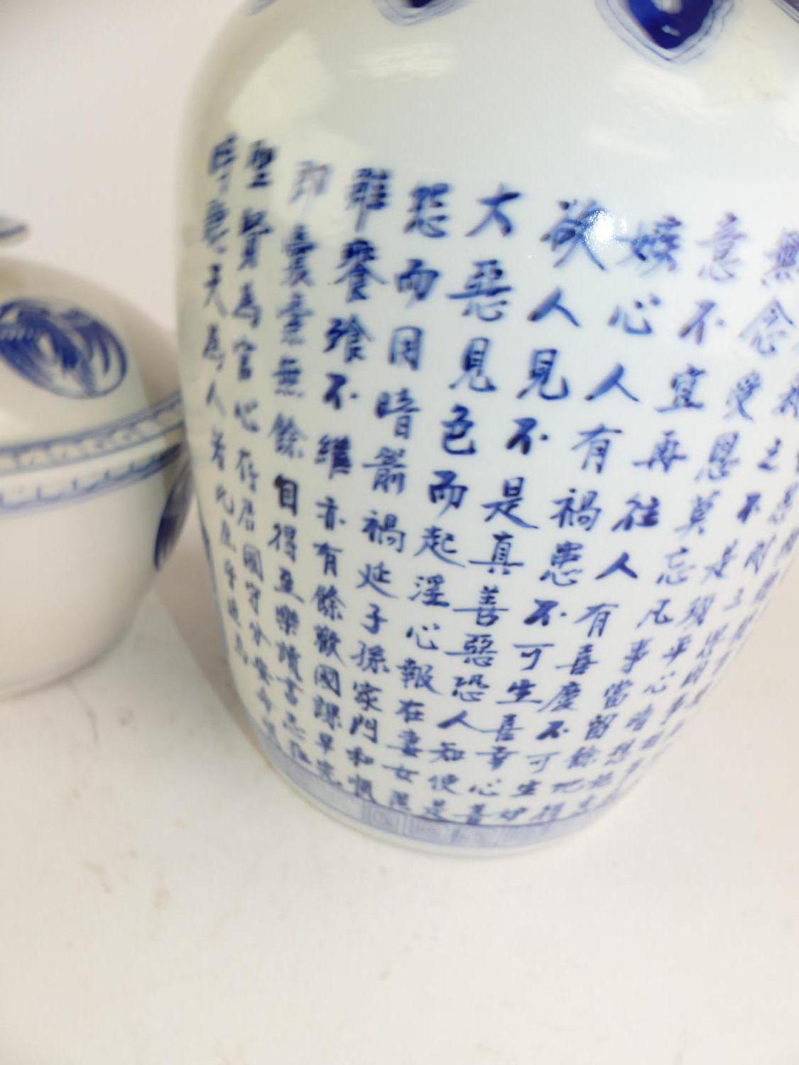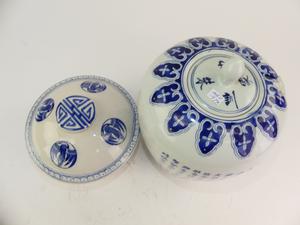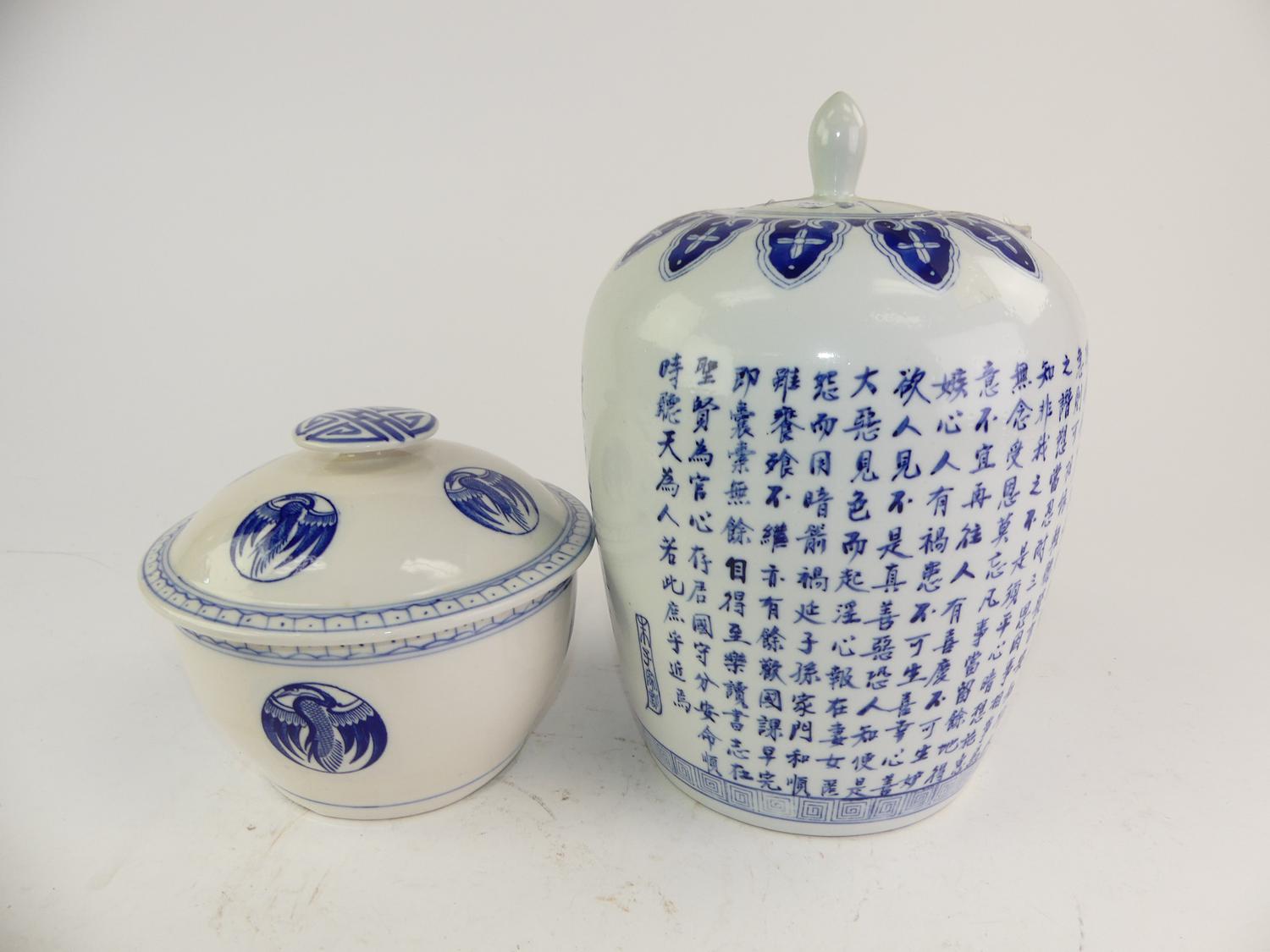 chinese blue and white ginger jar and covered pot, ht. 12"