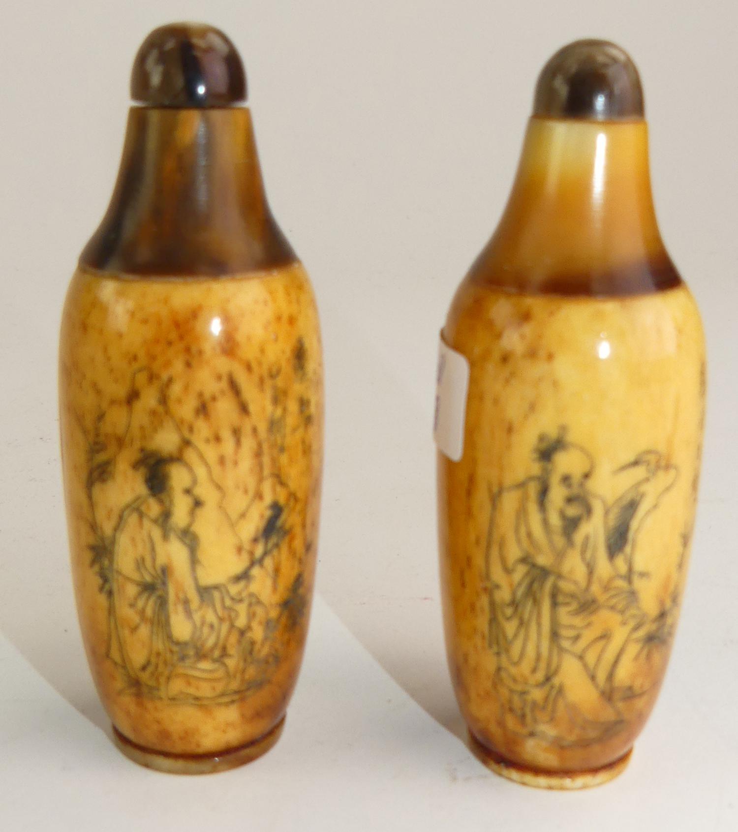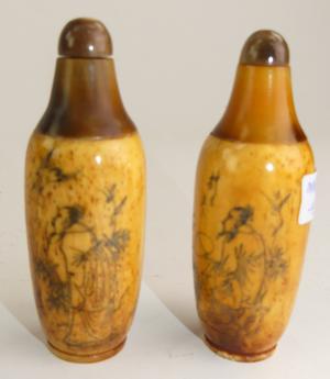 pair of chinese horn and bone snuff bottles, ht. 3 1/2"