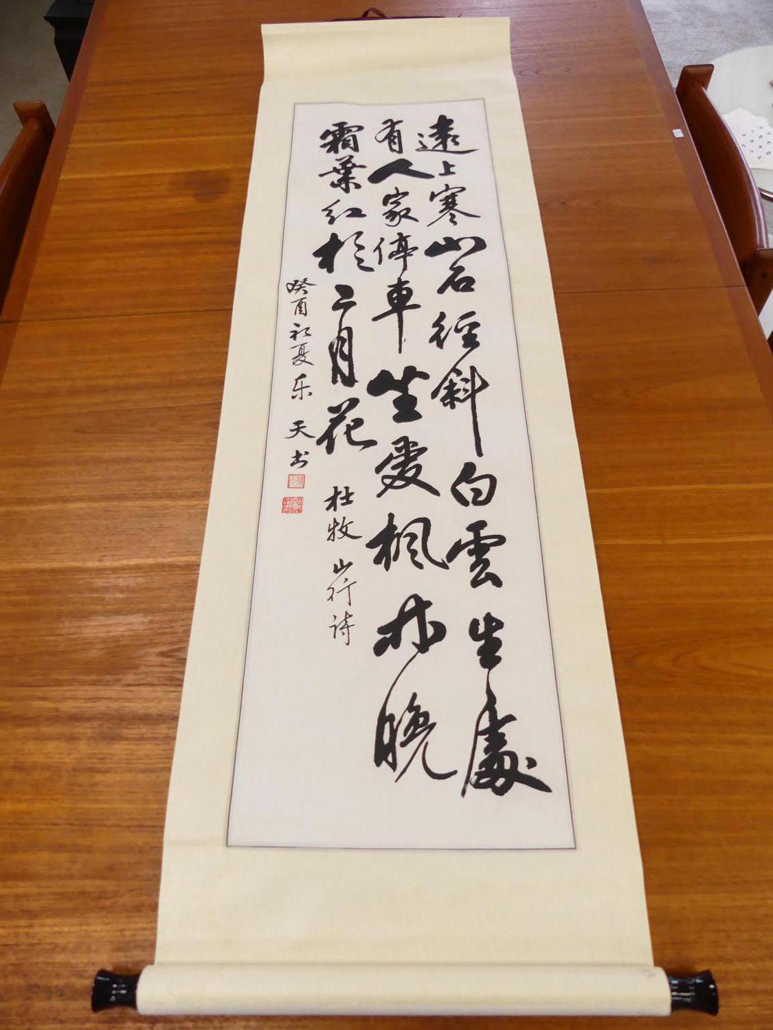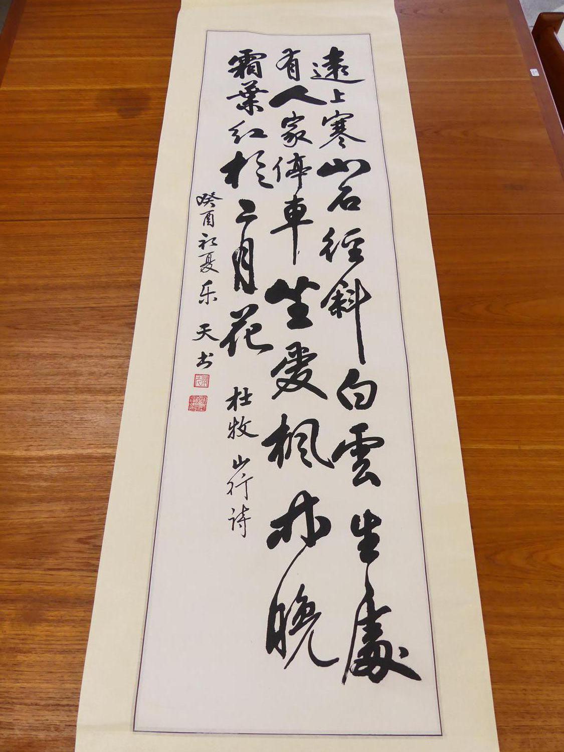 chinese ink calligraphy scroll, 60" x 20"