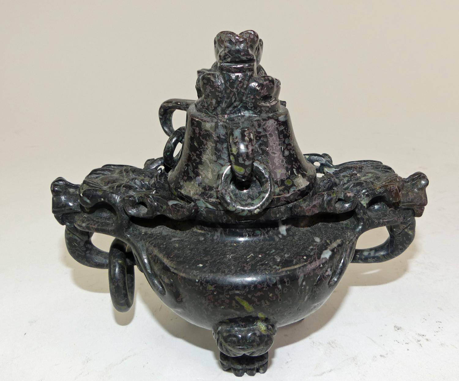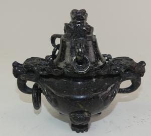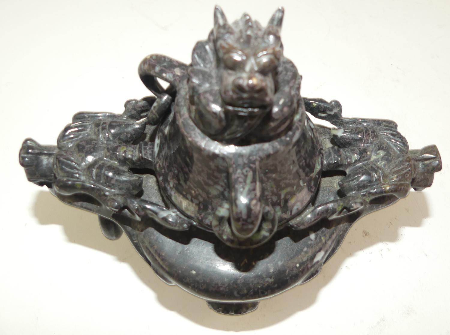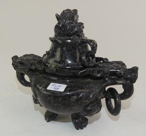 chinese carved stone incense burner, 6" x 7"- damaged -