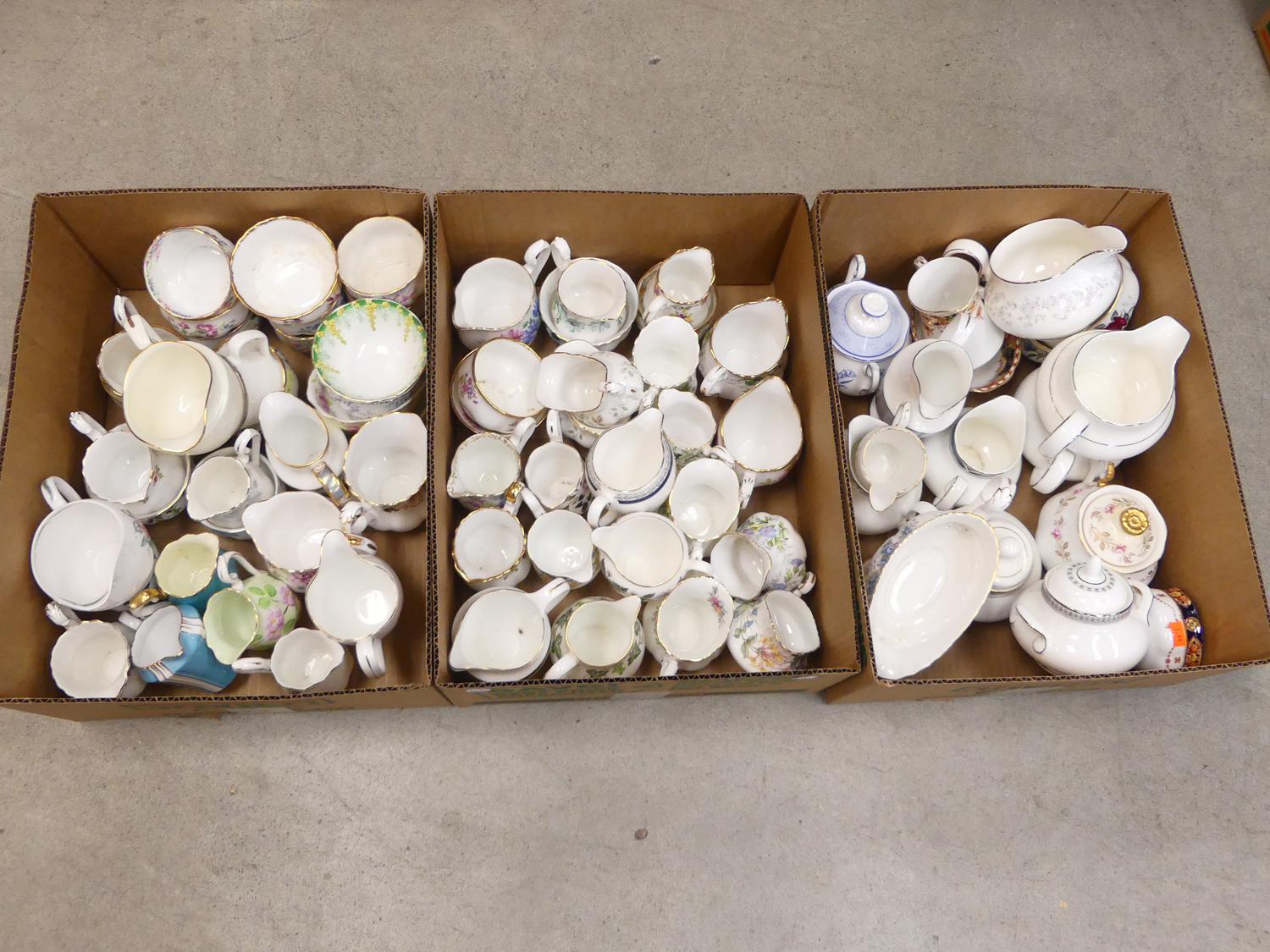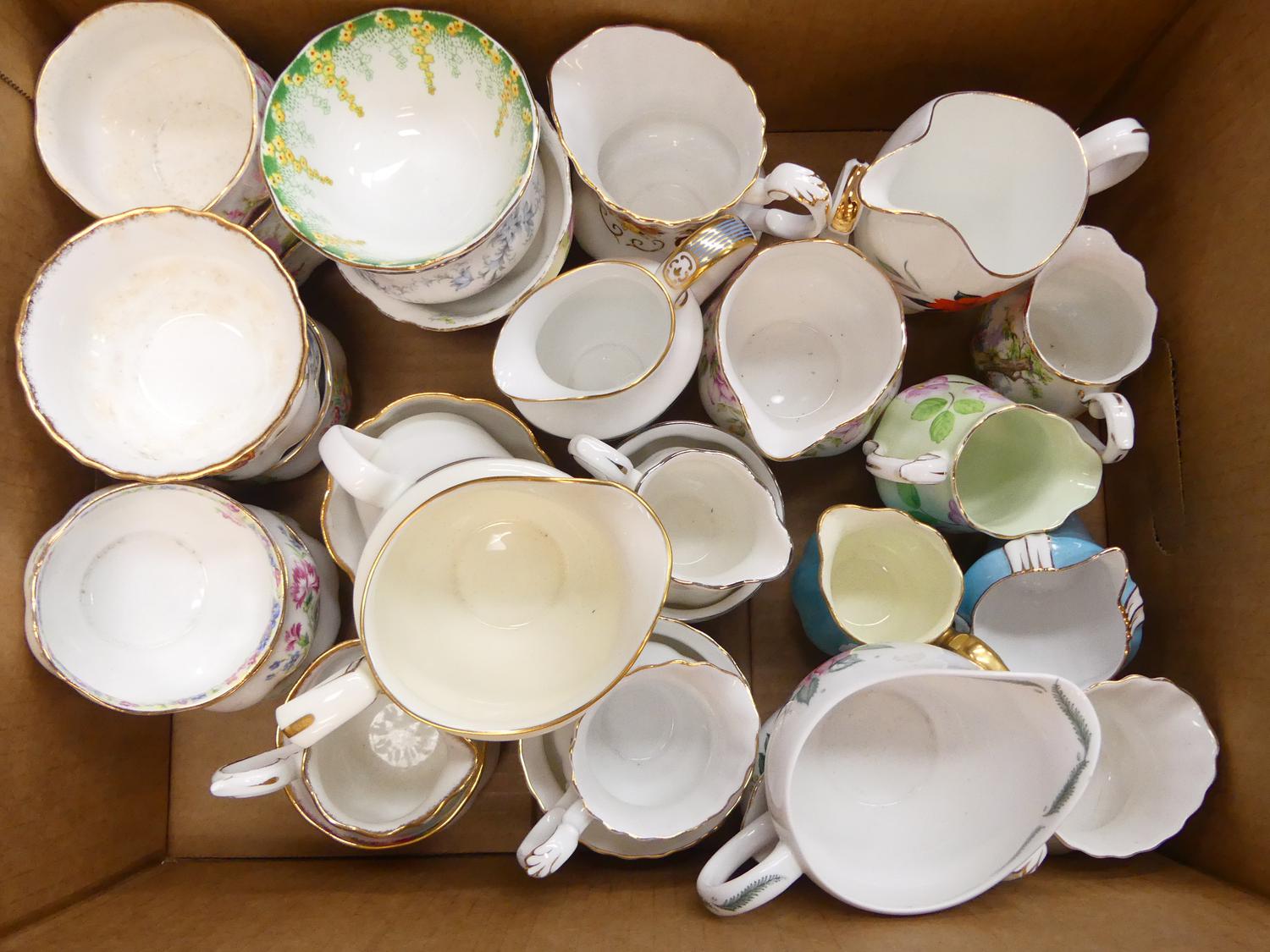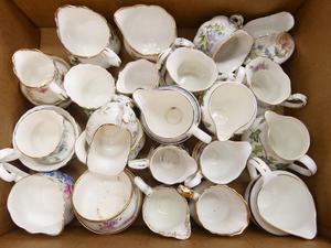 large lot of cream and sugars, including paragon and aynsley