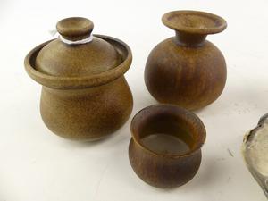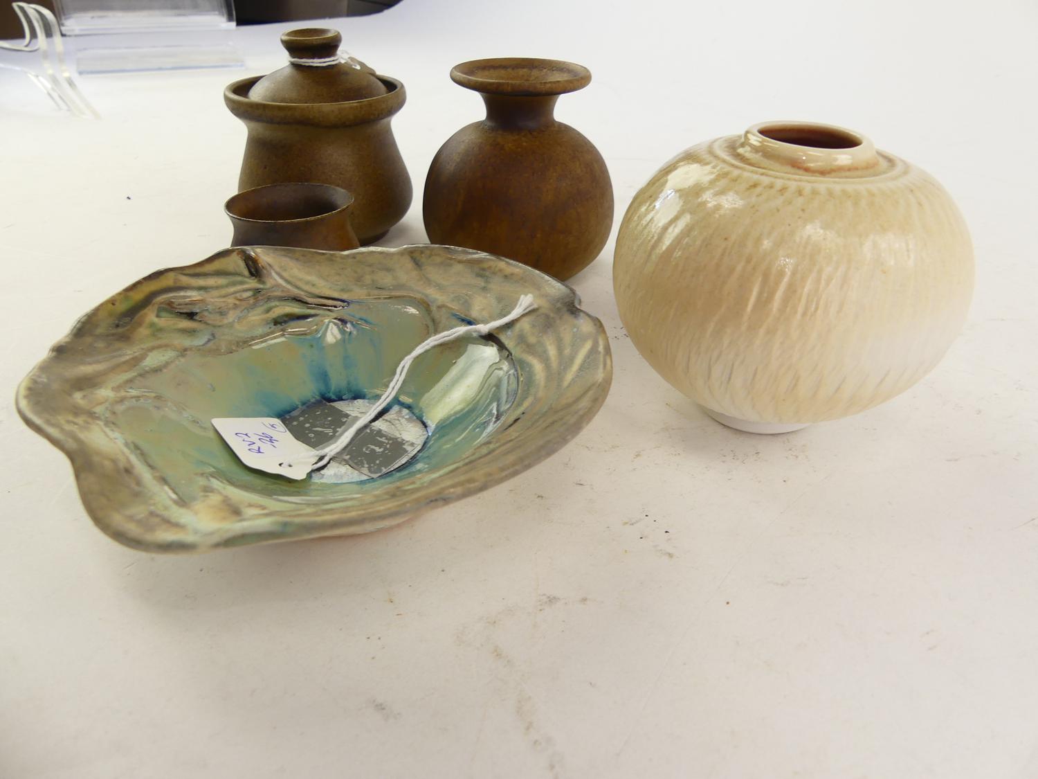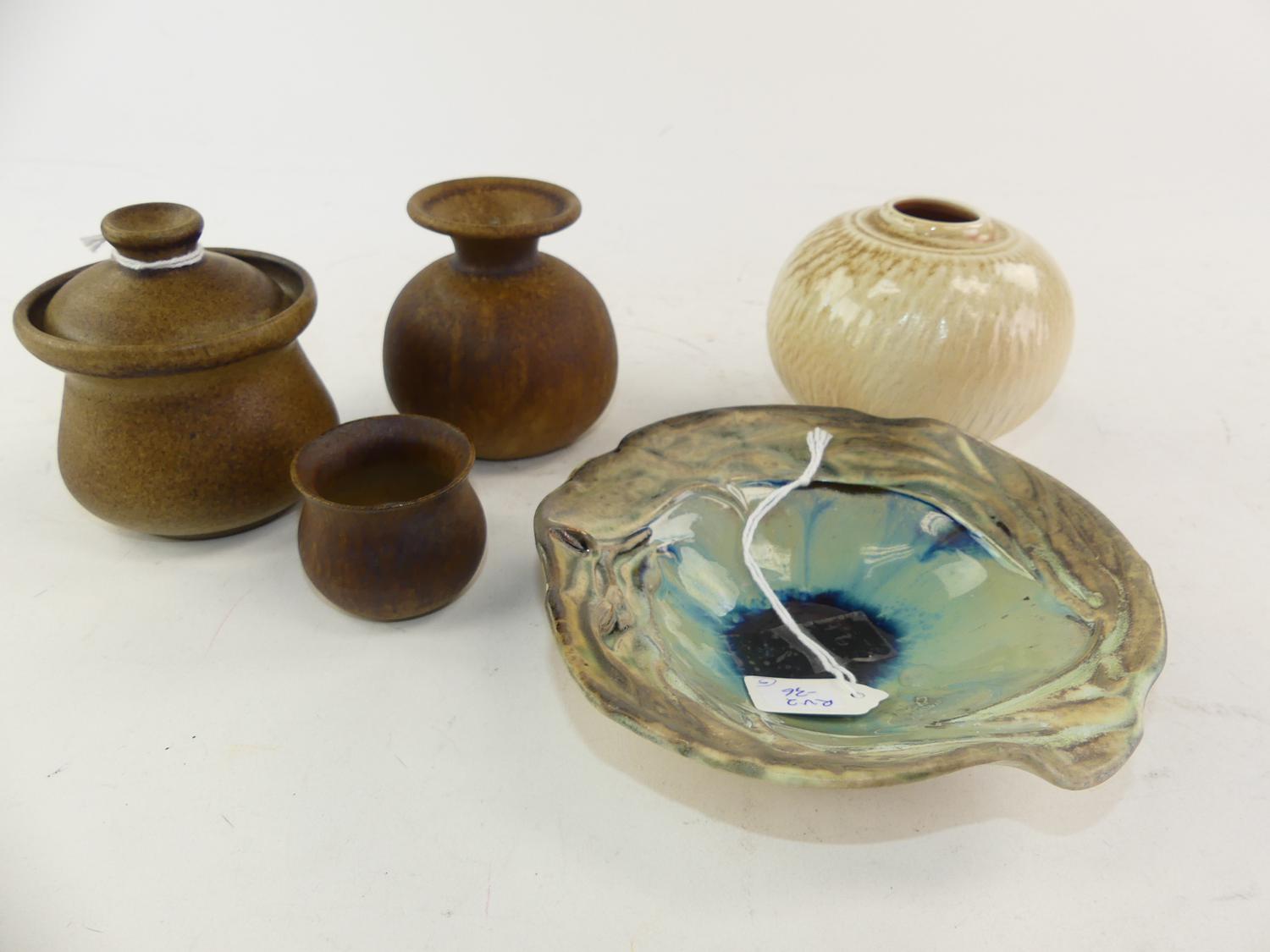 five pieces of pottery including grove, meera matheson, gordon hutchens