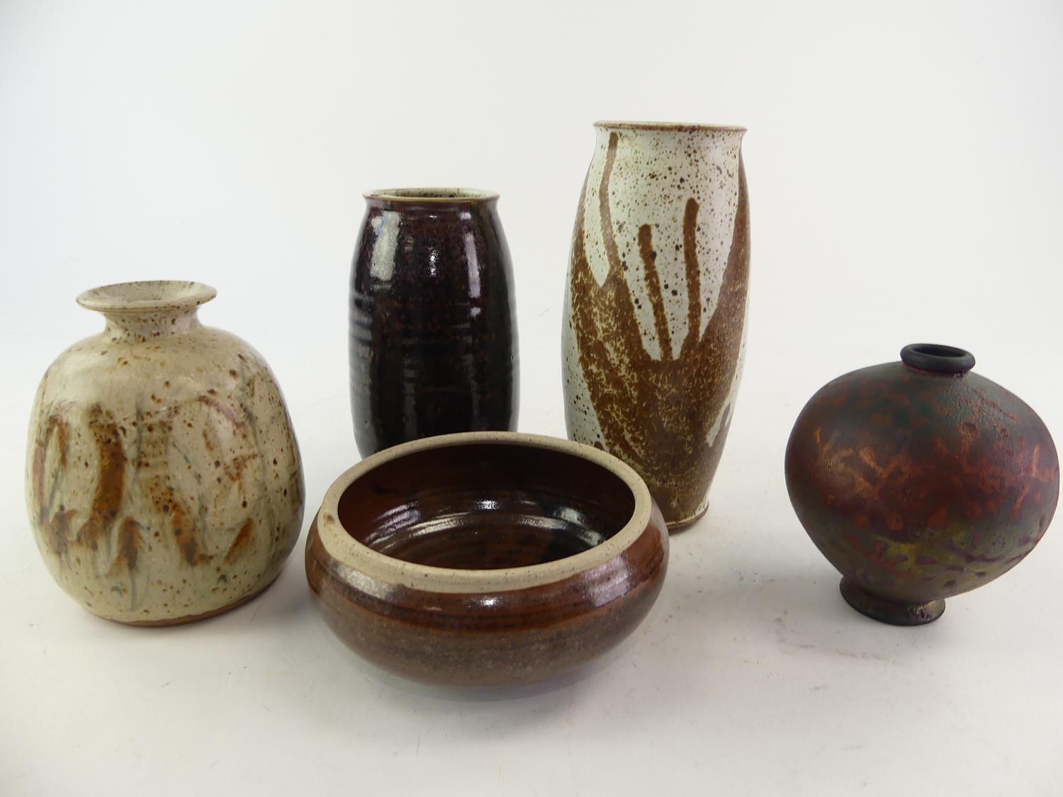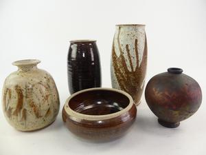 five pieces of studio pottery, all signed by same artist, ht. 9"