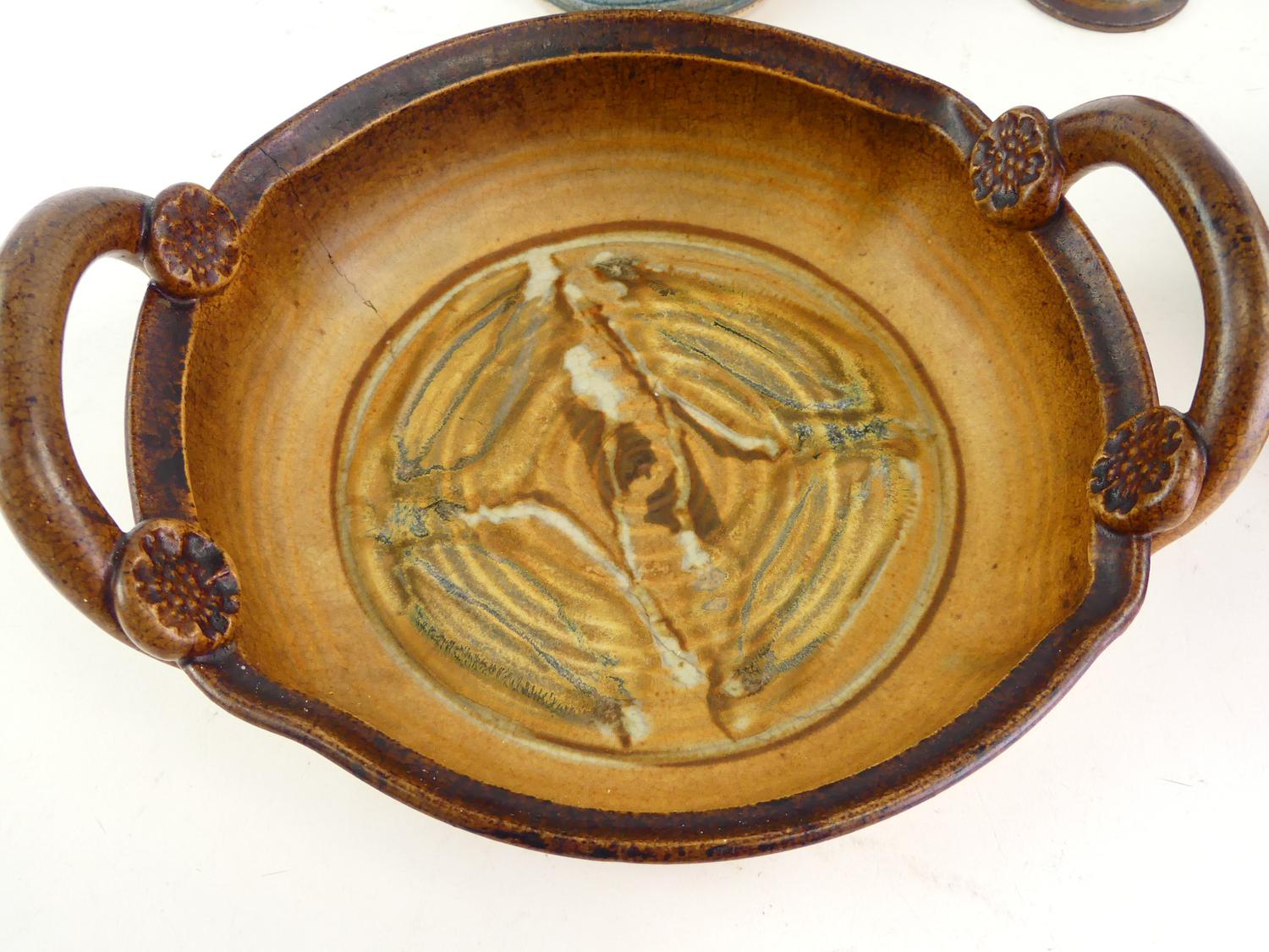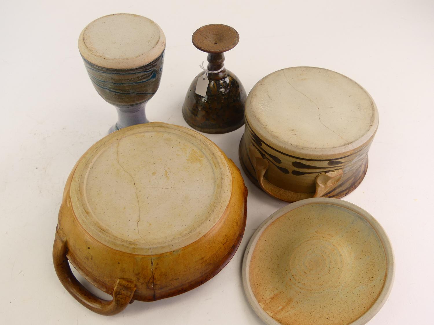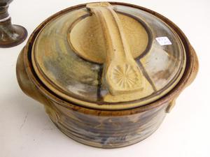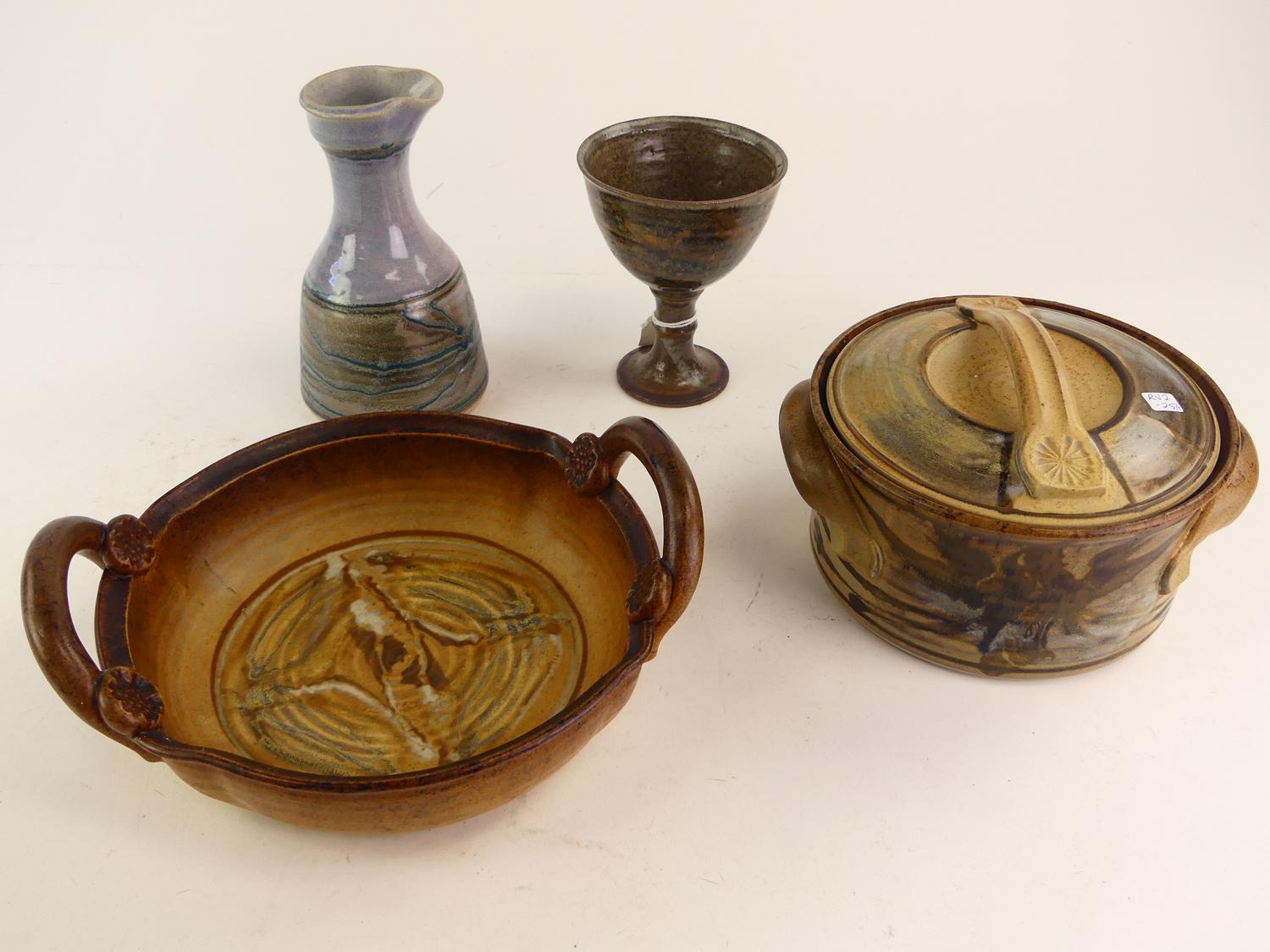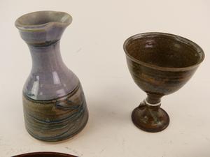 four pieces of robin hopper pottery, cracks, ht. 8"