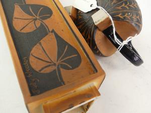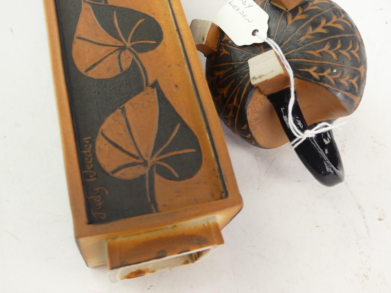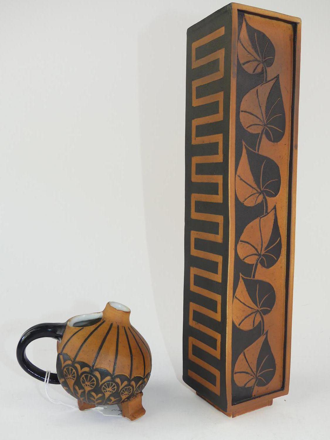 judy weeden art pottery vase and small jug, ht. 12 1/2"