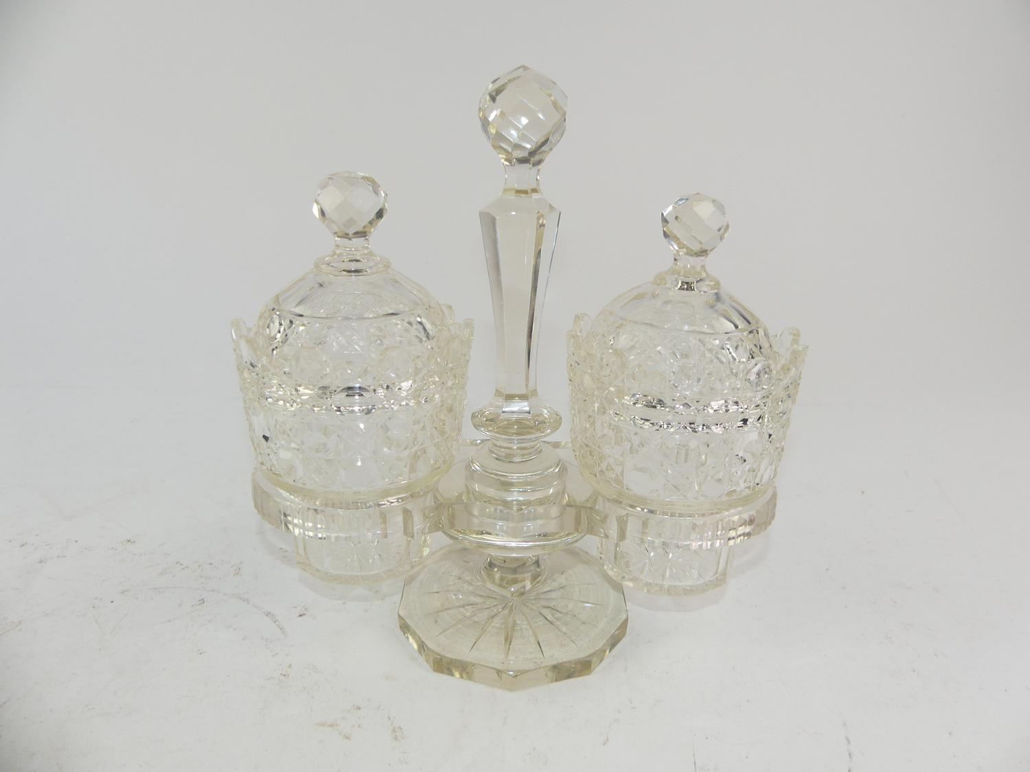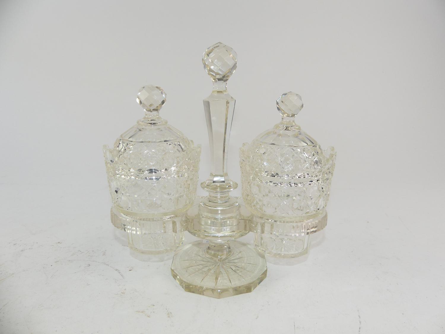 19th century cut crystal sweetmeat cruet, 8 1/2" x 8 1/2"