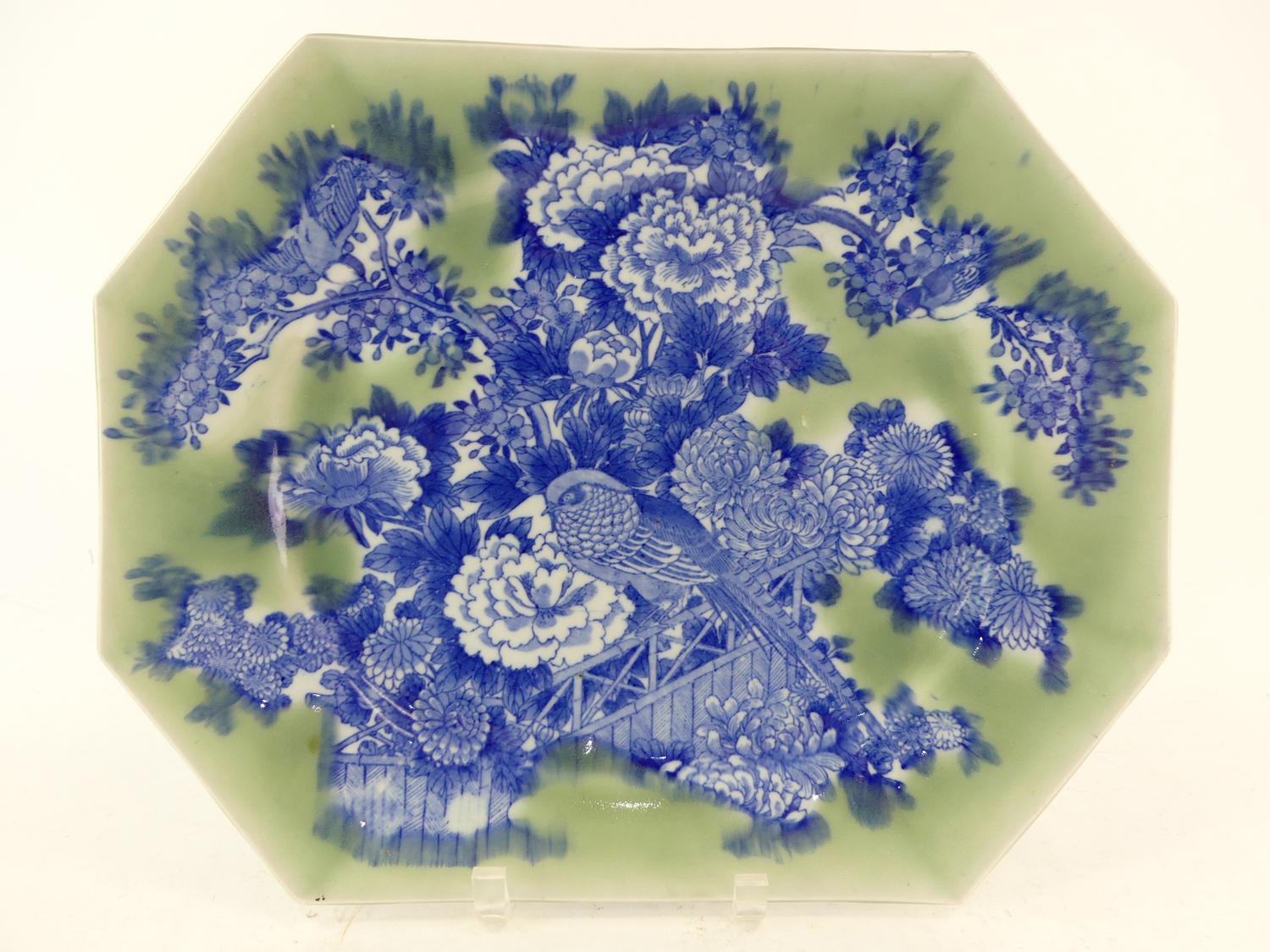 japanese celadon and blue platter, 12" x 15"