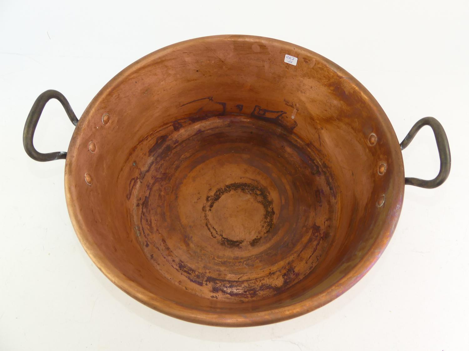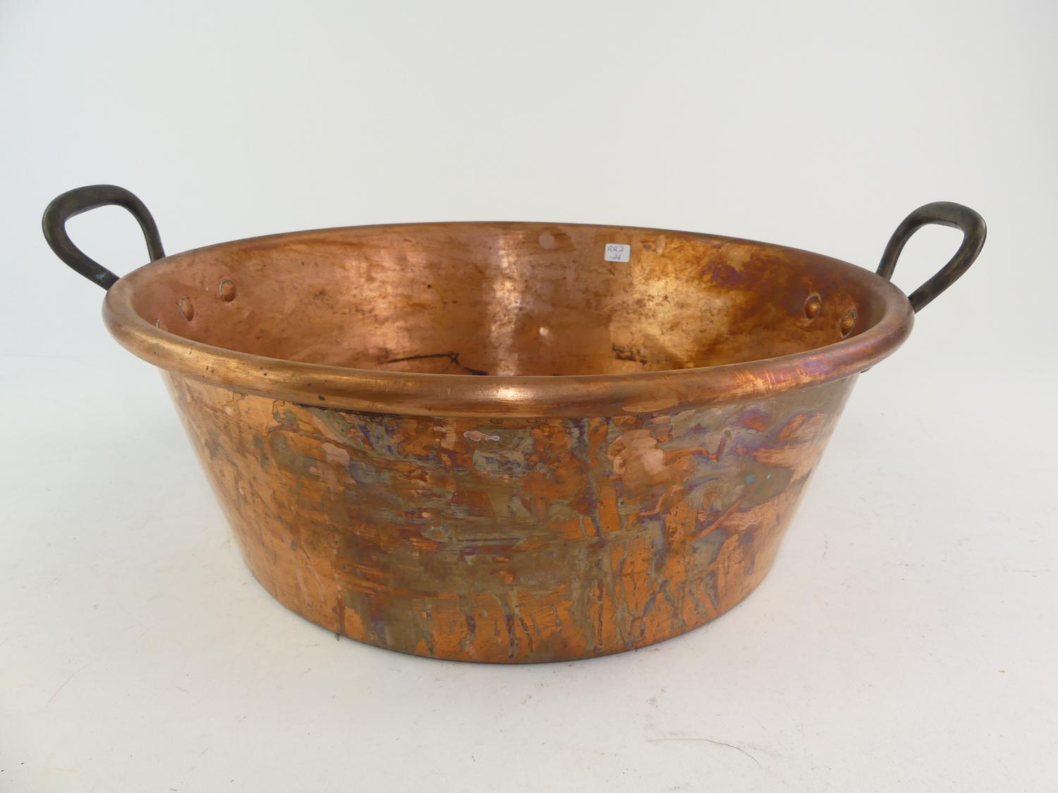 large copper jelly pan with brass handles, 7 1/2" x 19"