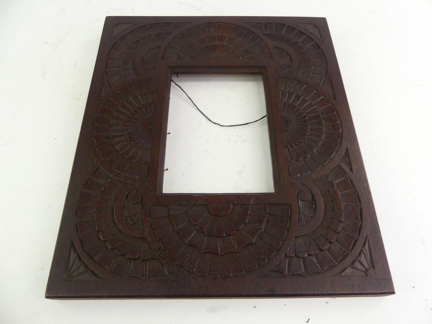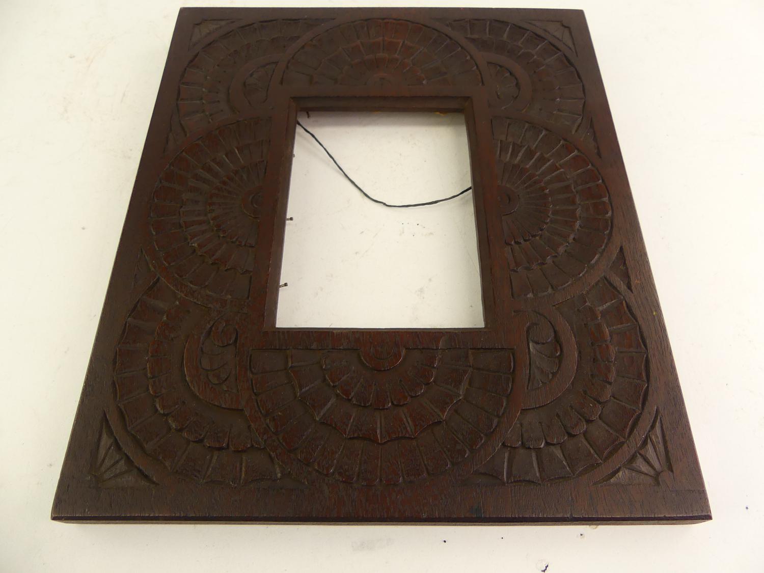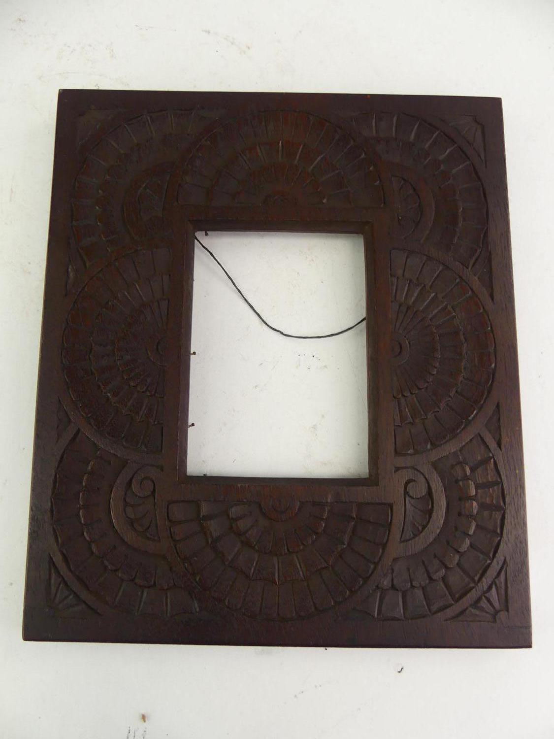 arts and crafts chip carved oak frame, "carved by miss e. e. somerset, 1903", 12 1/4" x 10 1/4"