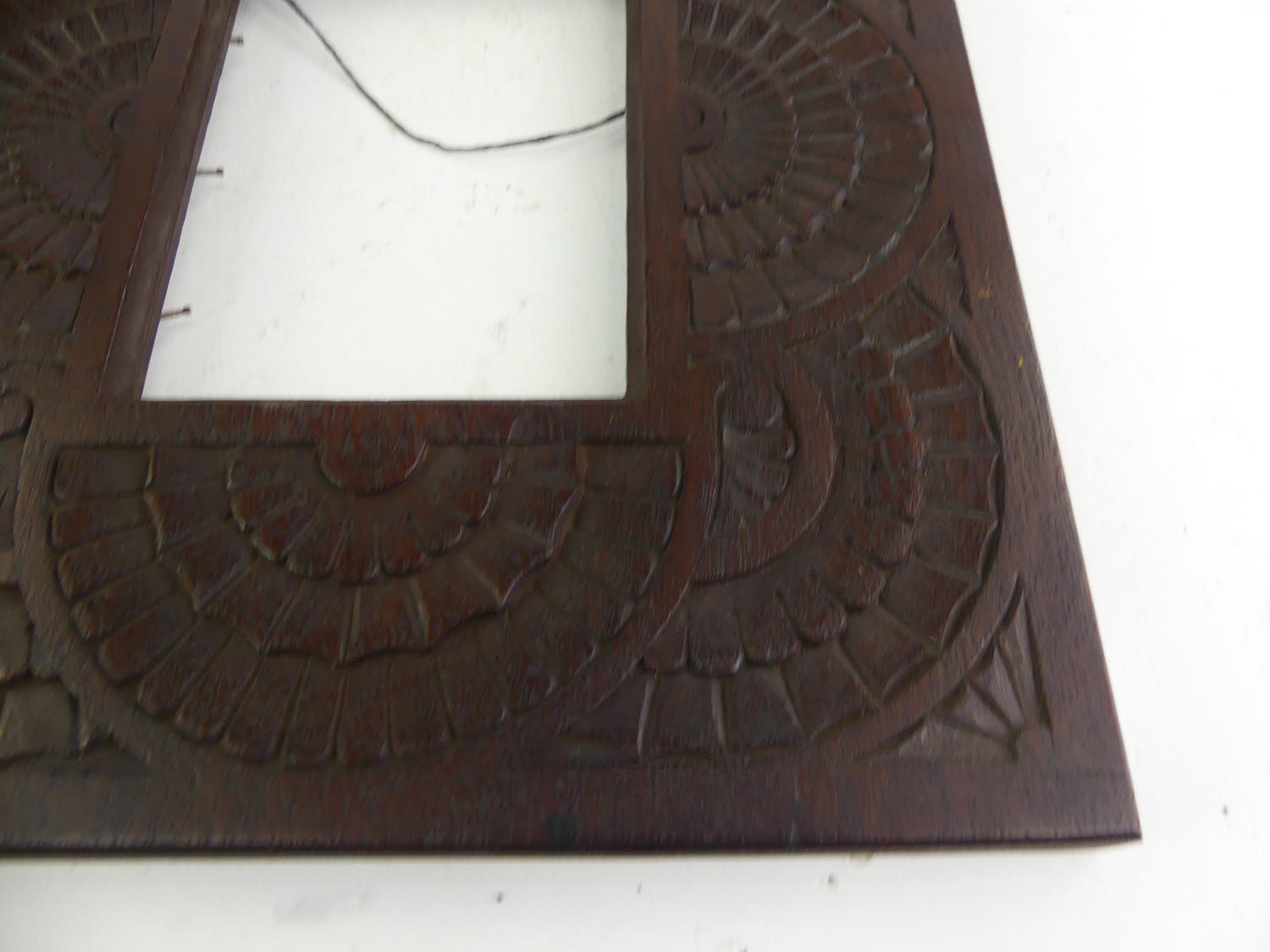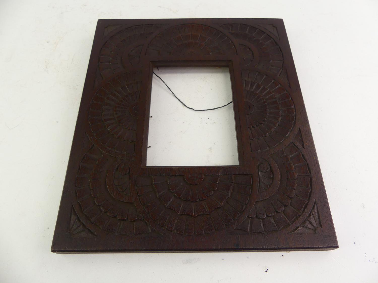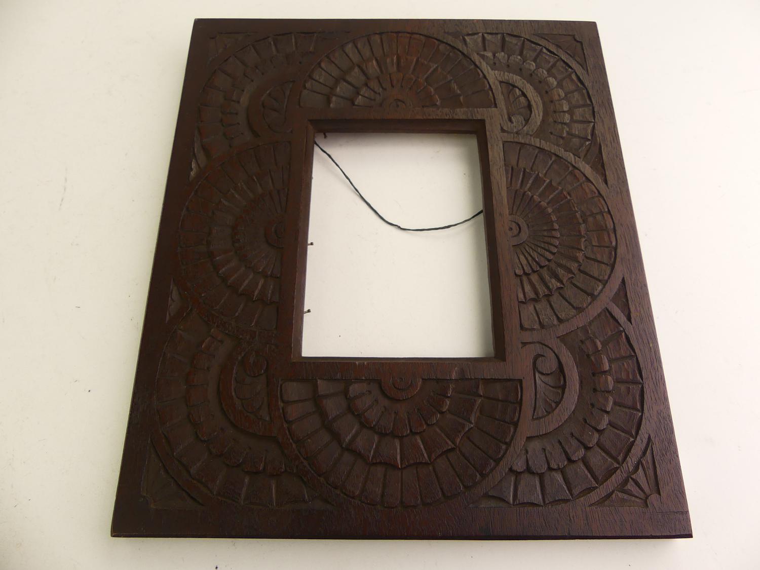 arts and crafts chip carved oak frame, "carved by miss e. e. somerset, 1903", 12 1/4" x 10 1/4"