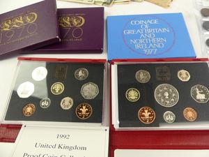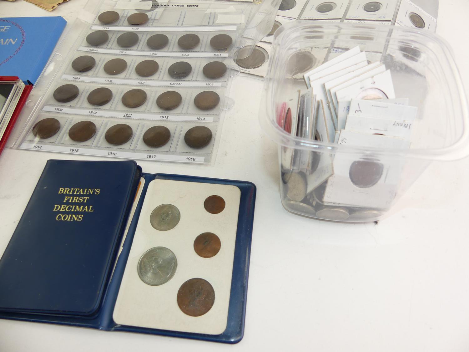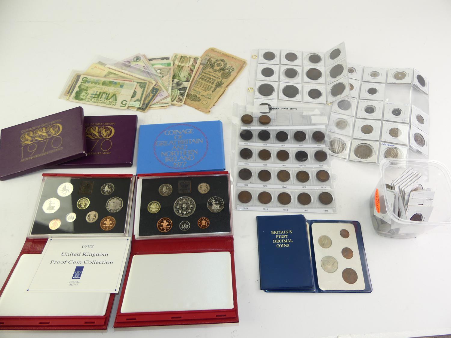 lot of coins including upper & lower canada coins, canadian pennies from 1900-1920, british sets 1993, 1970 x2, 1977 x2, 1992, and misc. international loose coins and notes