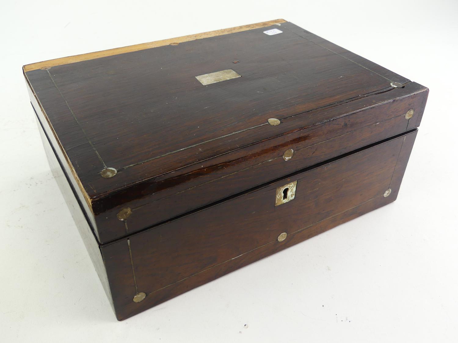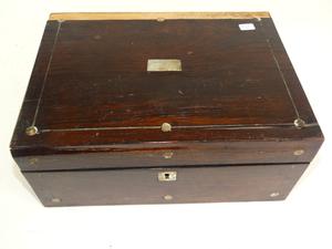 victorian inlaid rosewood dresser box, 5" x 12" x 9"