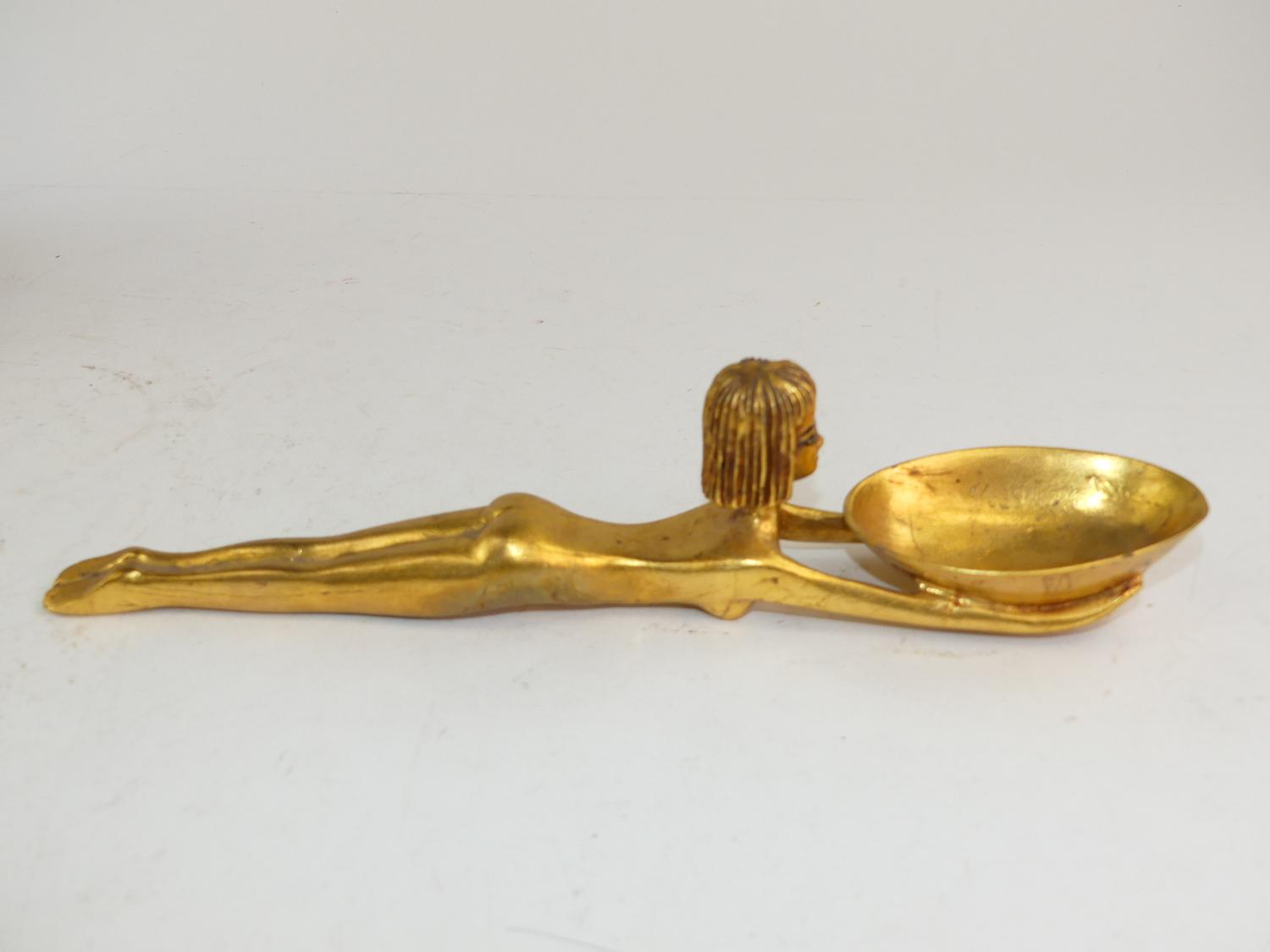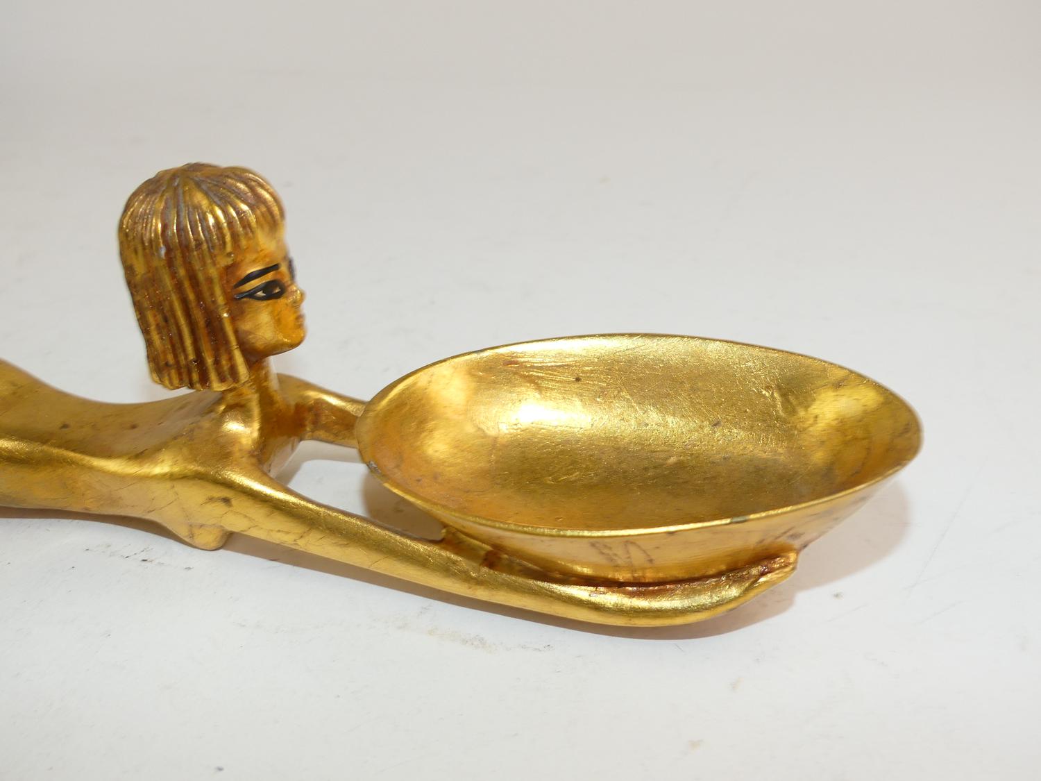 egyptian revival nude figural carved and gilded dish, length 11 1/2"