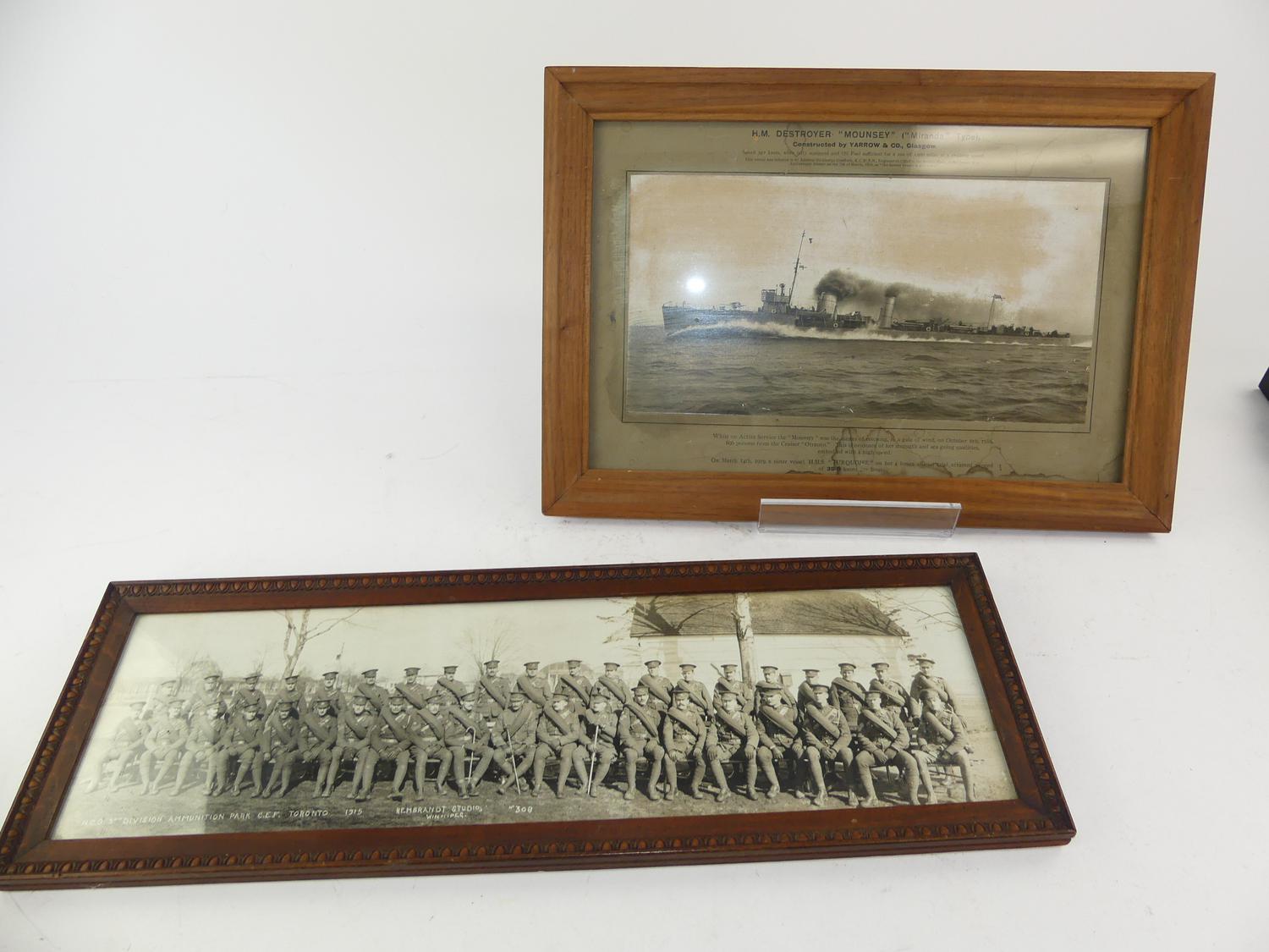vintage photograph - "nco - 2nd division amunition park, c. e.f., toronto, 1915" together with "hm destroyer - mounsey, yarrow & co. glasgow"