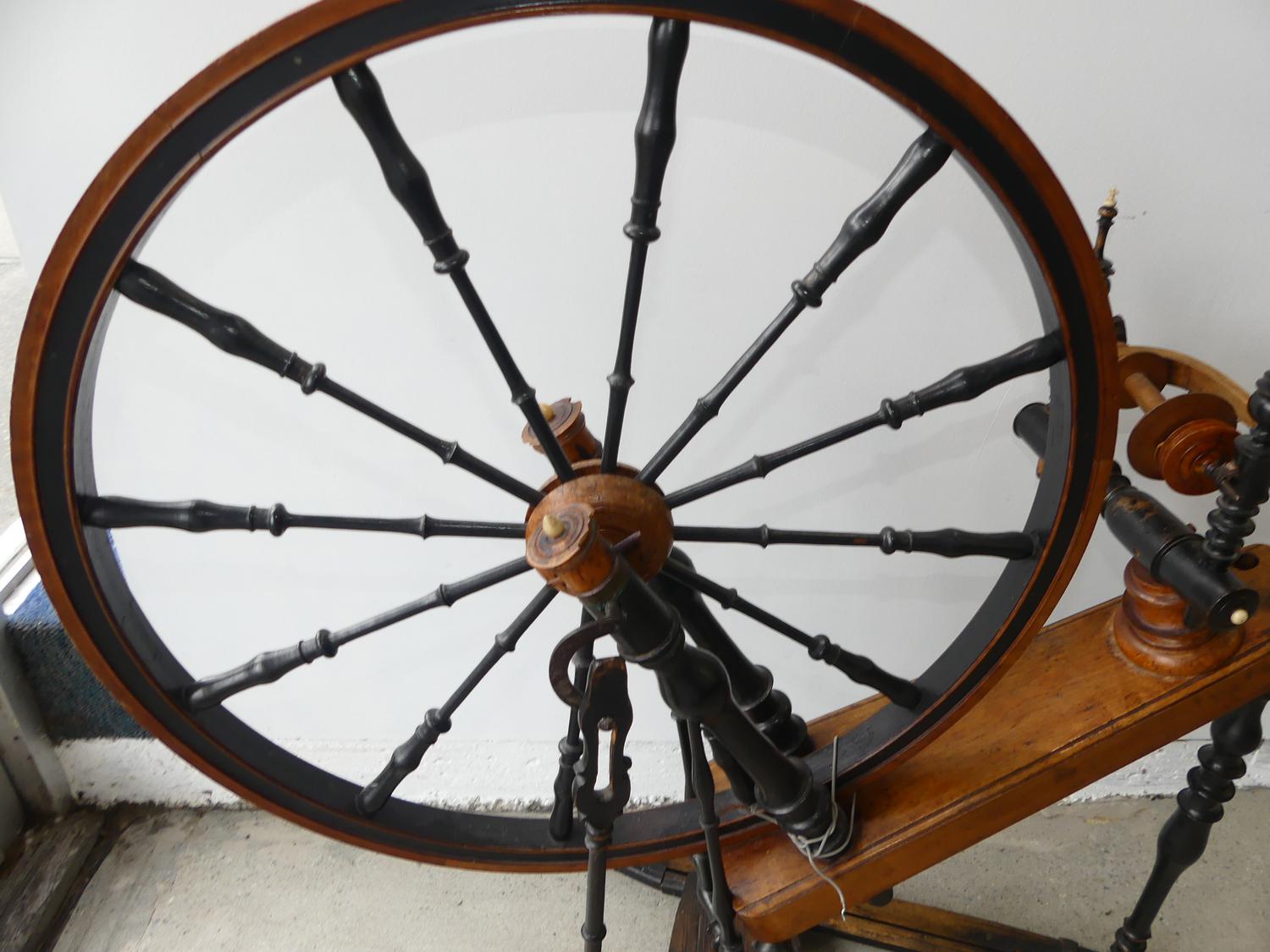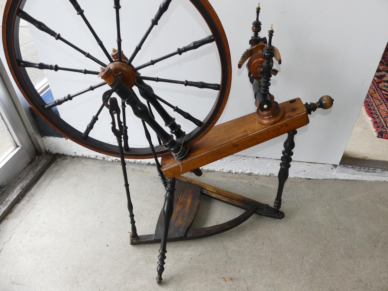 19th century spinning wheel with ivory accents, 36" x 34"