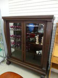 edwardian mahogany glazed china cabinet, c. 1900, 61 1/2" x 53" x 20"