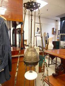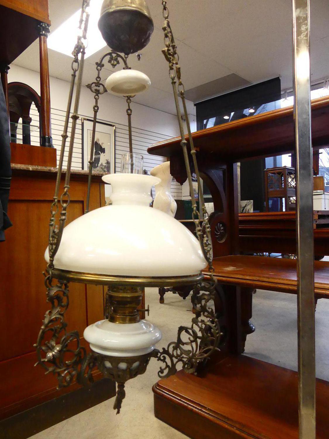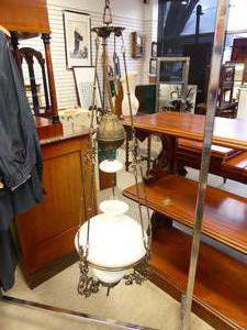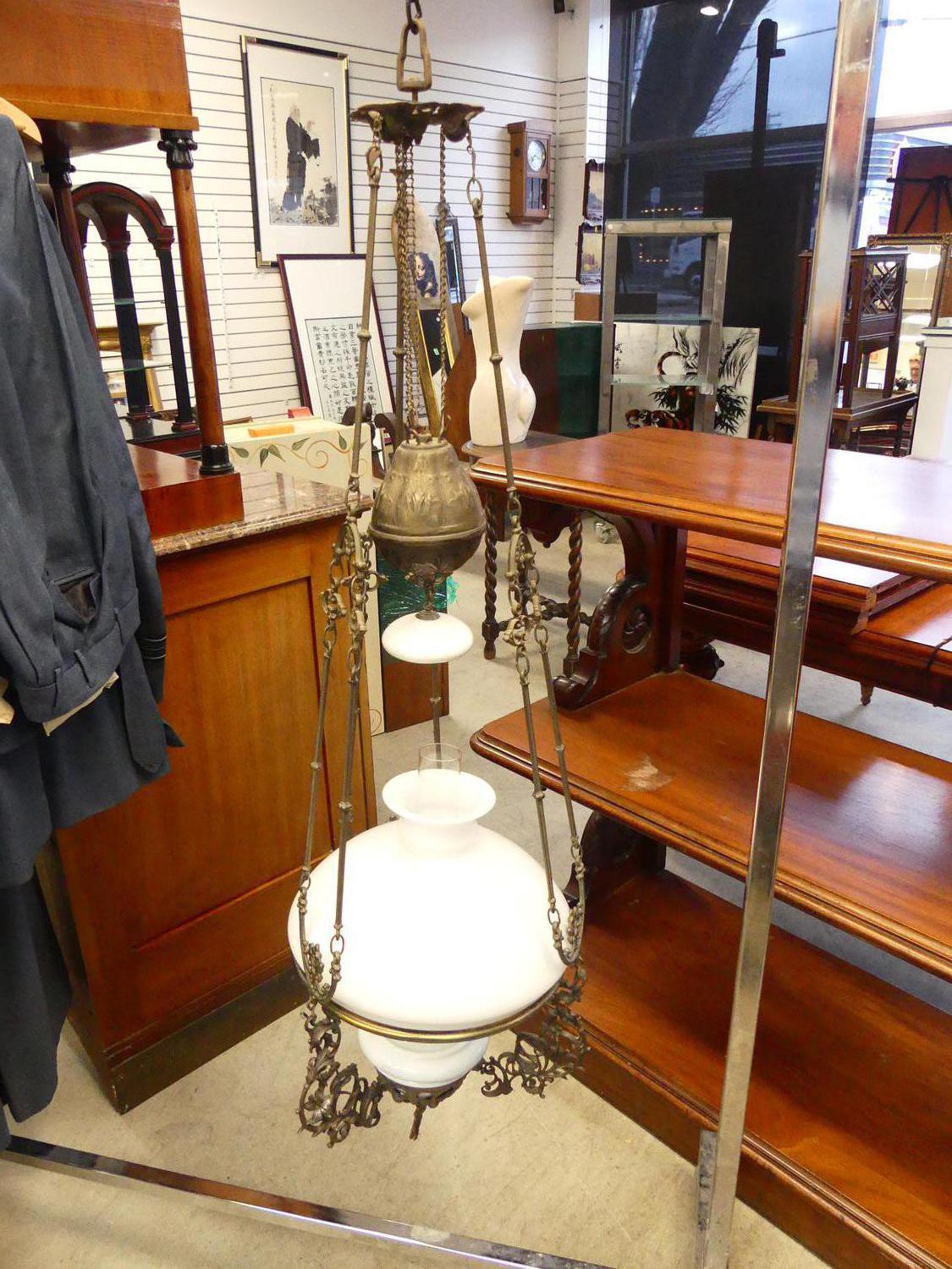 art nouveau hagning oil lamp, late 19th century, ht 45"