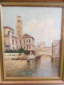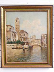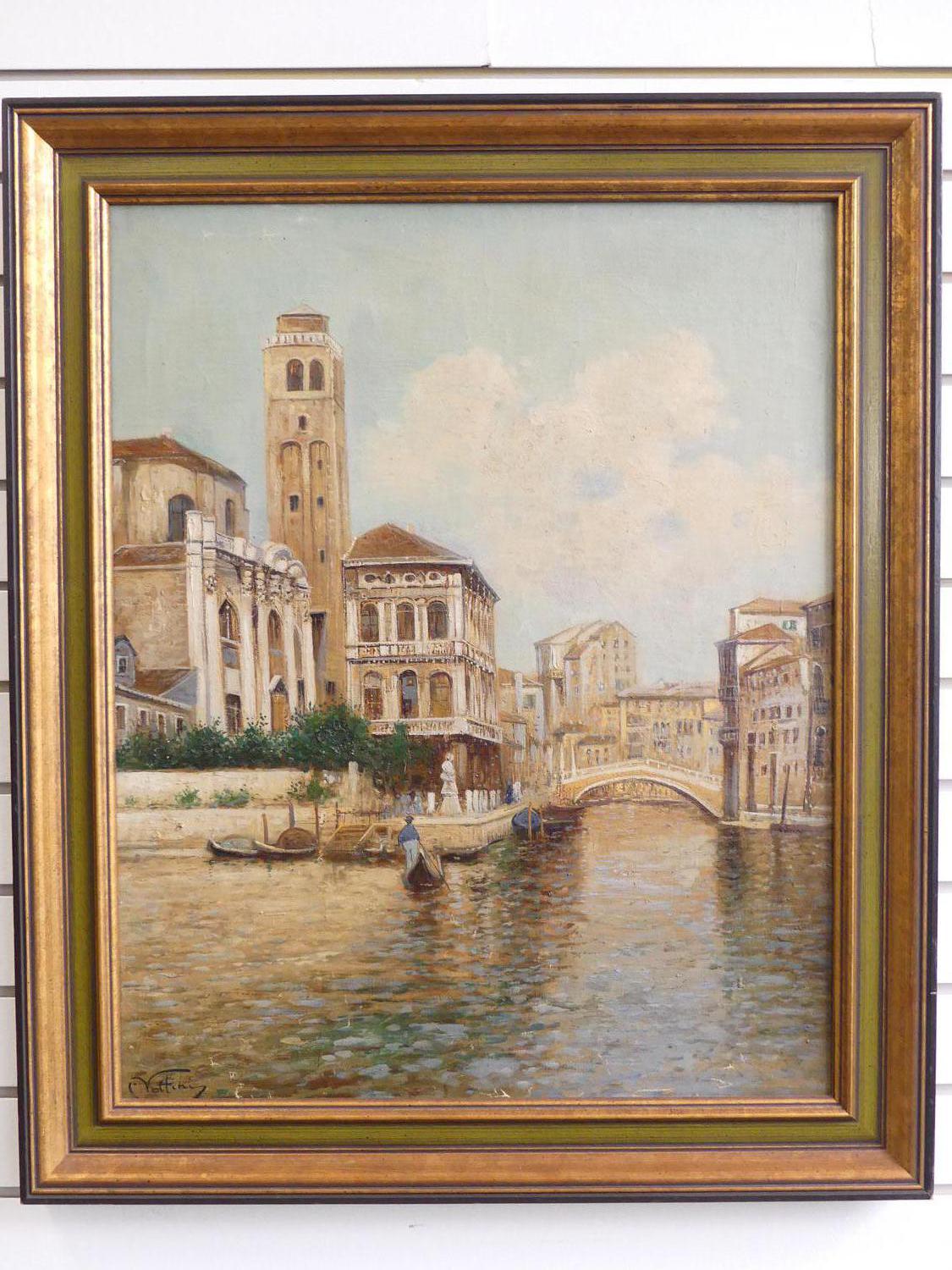 indistinclty signed "c. voltini" oil on canvas, 26" x 21", "venice canal"