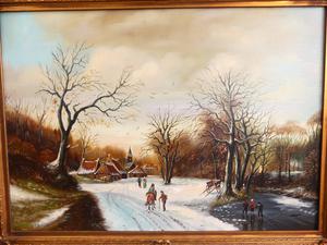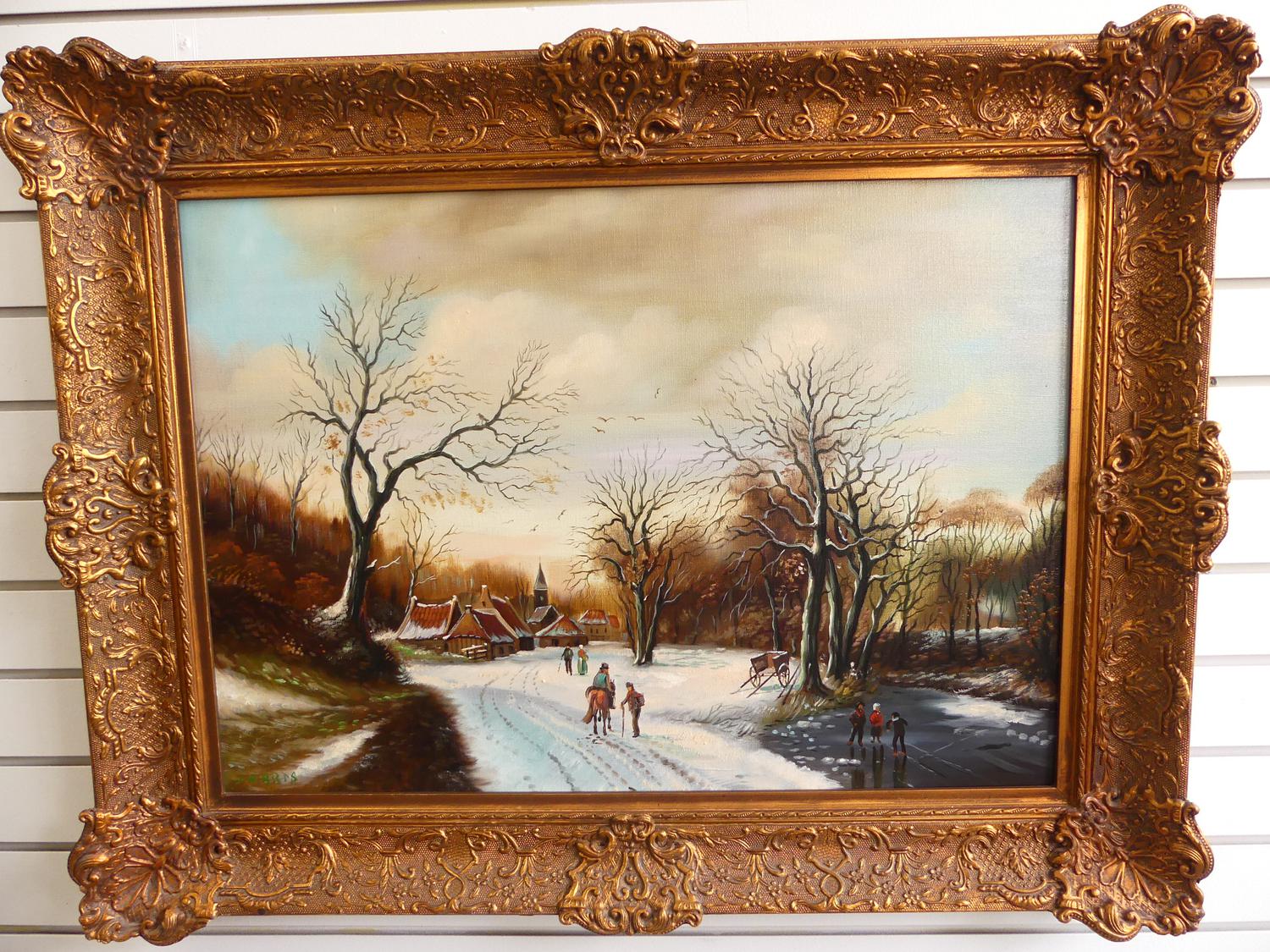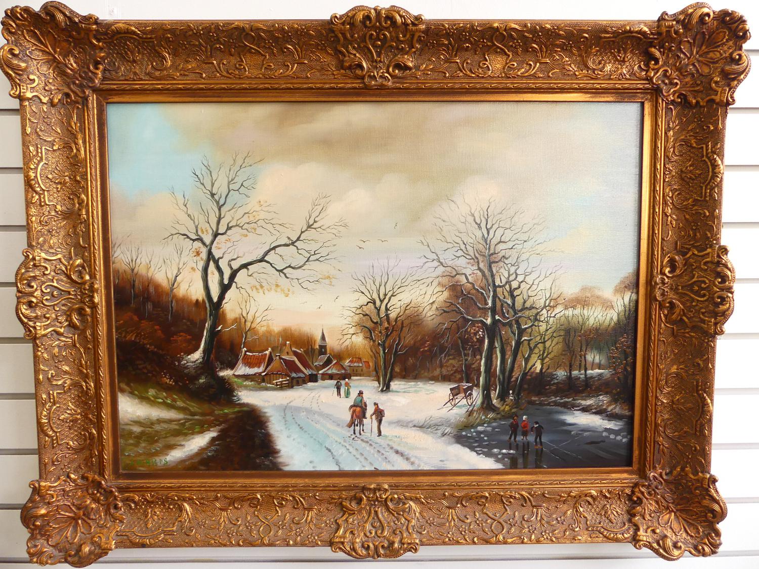 j. b. arts, oil on canvas, 20" x 27", "dutch winter scene"