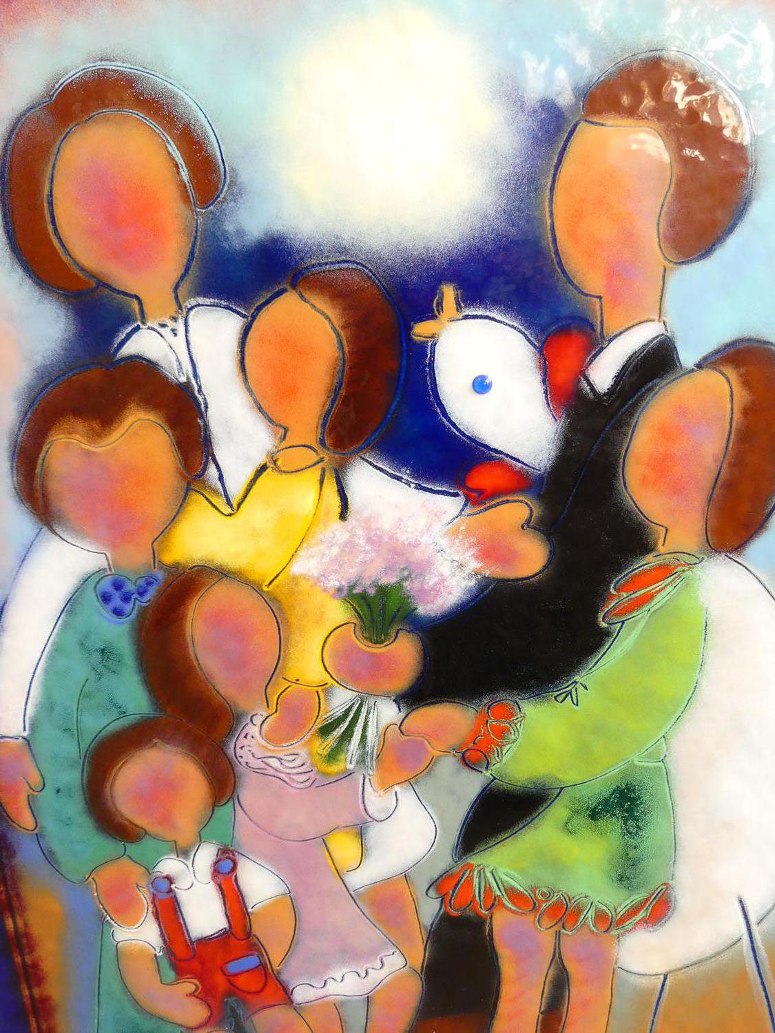 bernard seguin - poirier(b. 1949), enamel on copper 36" x 27", reve d. amour- dream of love"