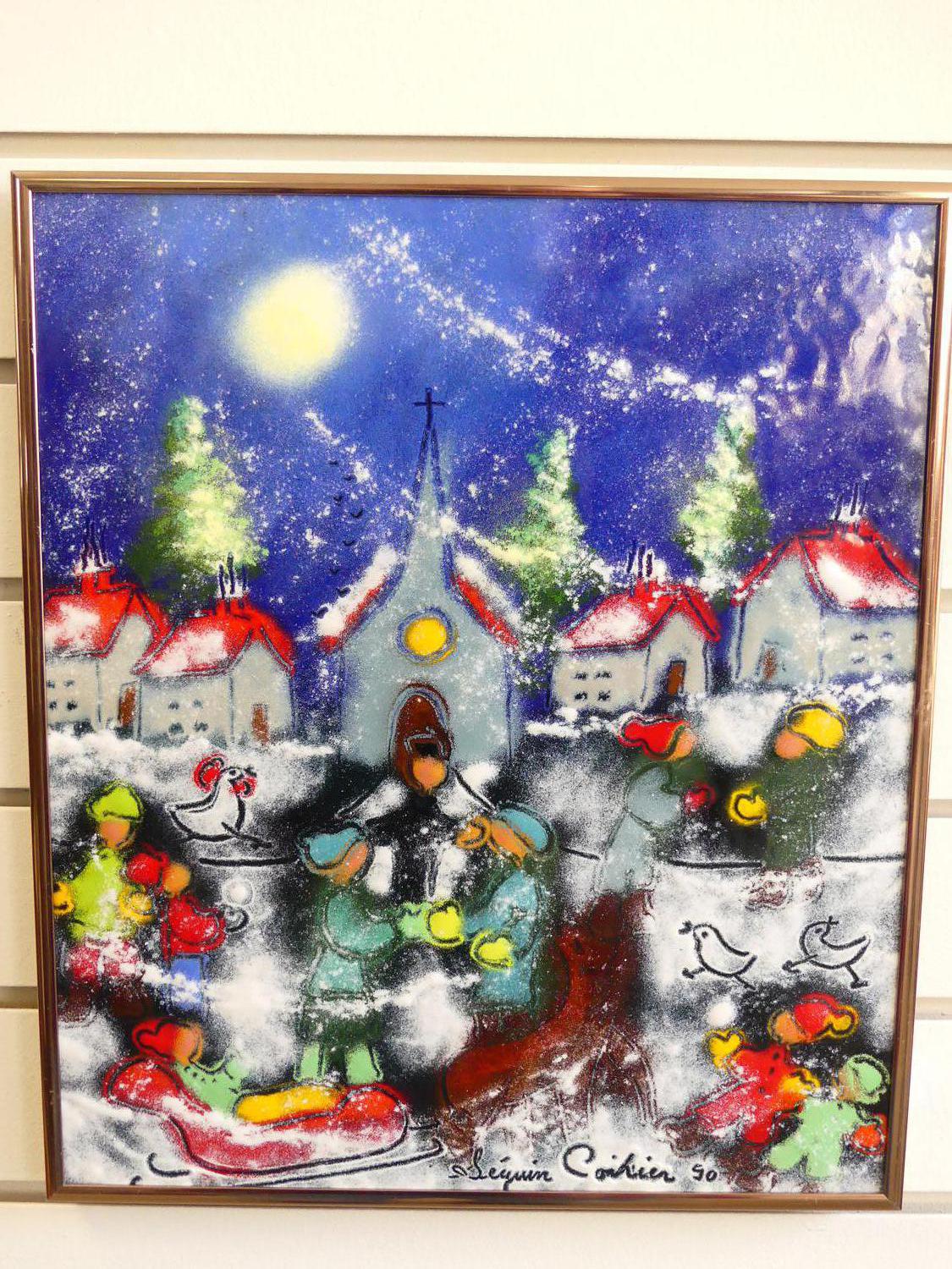 bernard seguin - poirier(b. 1949), d. 1990, enamel on copper, 14" x 12", "le minuit"