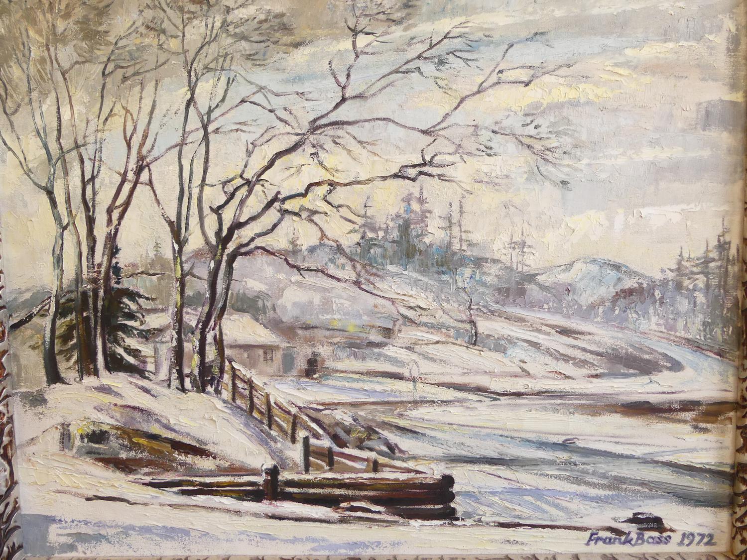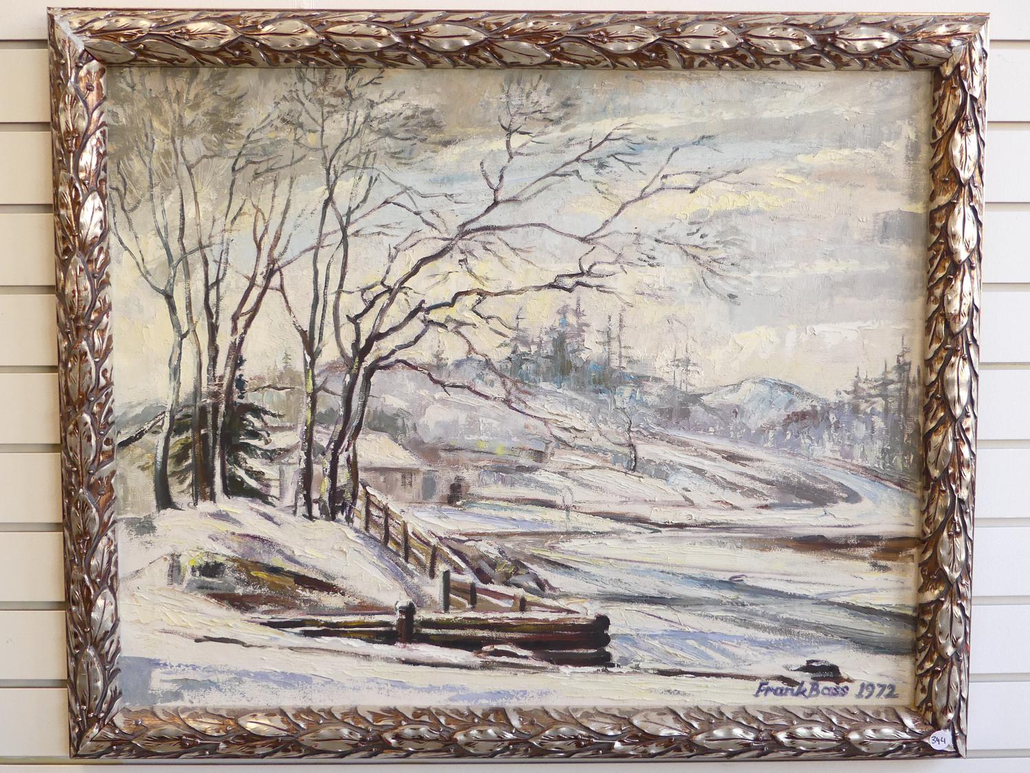 frank bass oil on canvas, 24" x 30", "winter landscape"