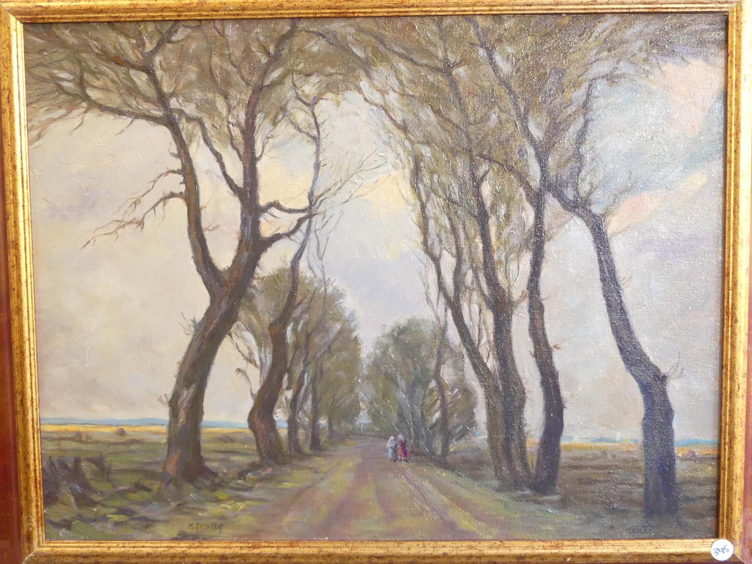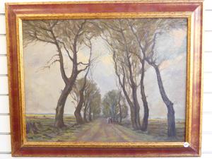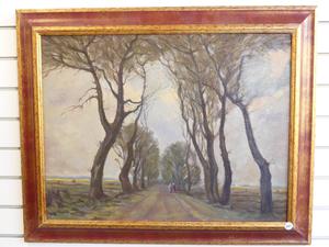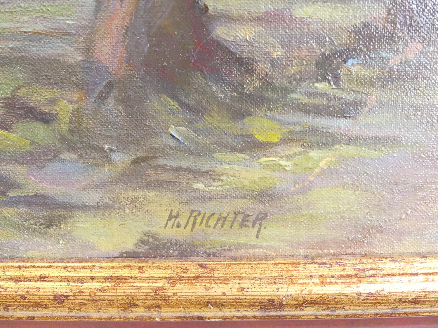 h. richter, oil on board, 18" x 24", "landscape with figures"