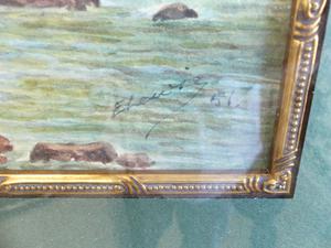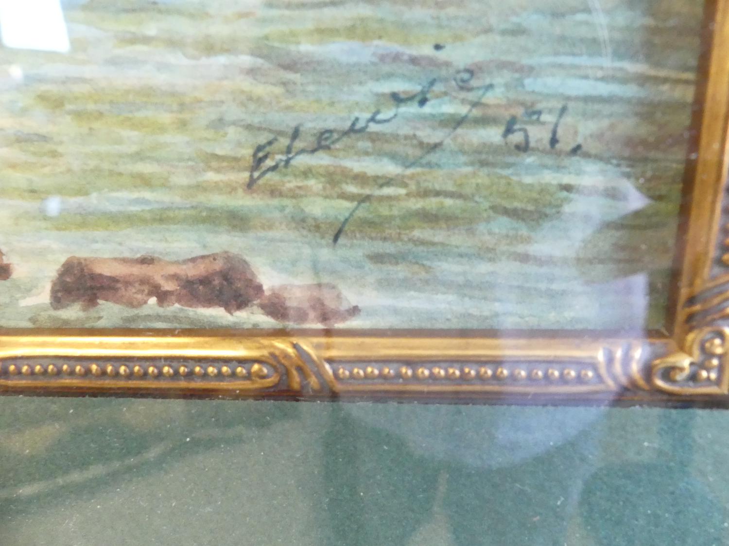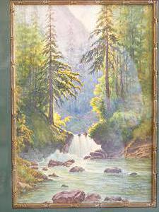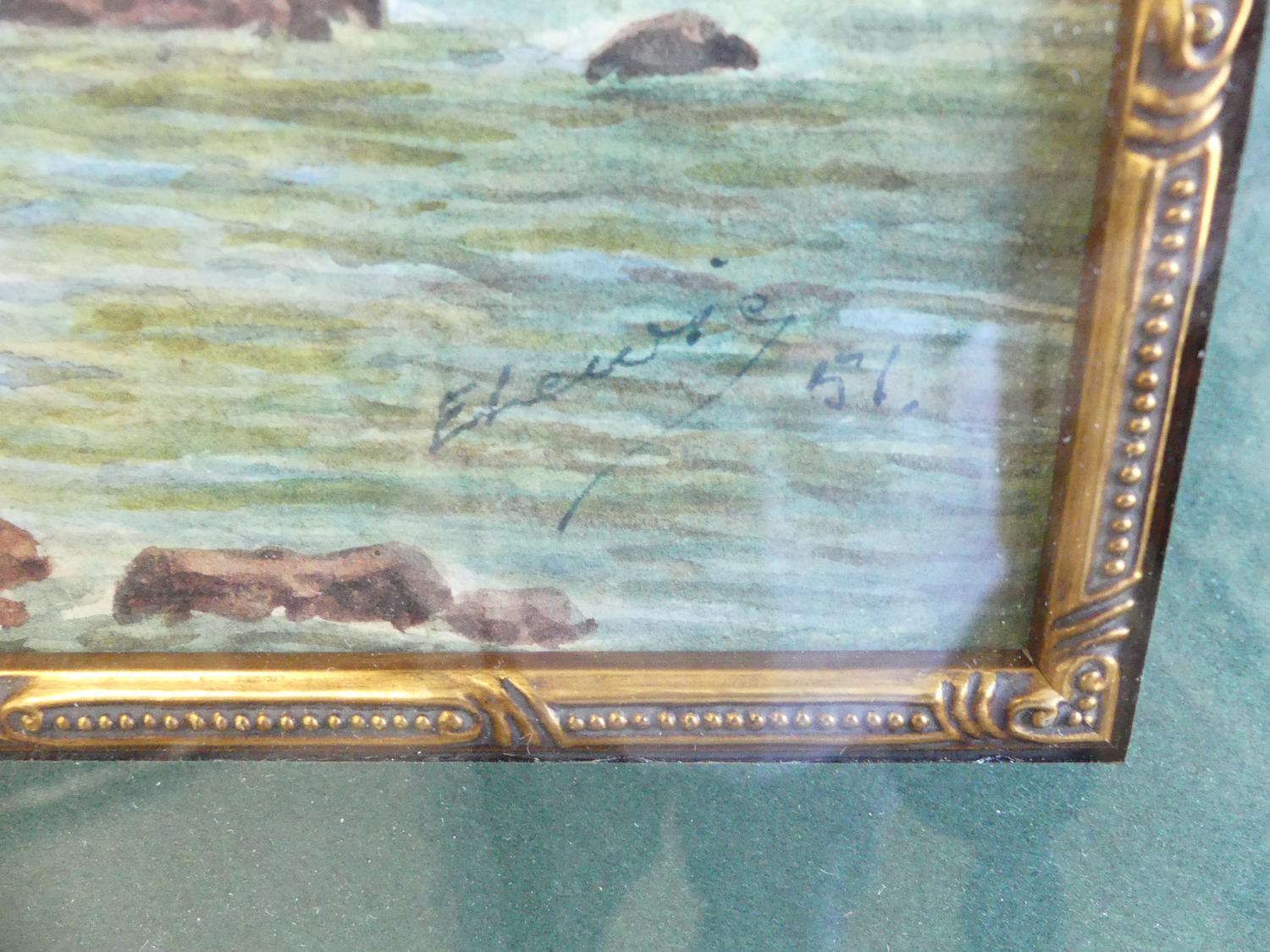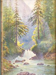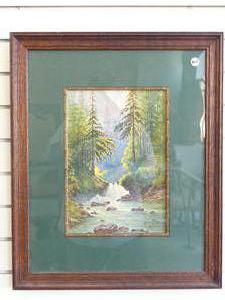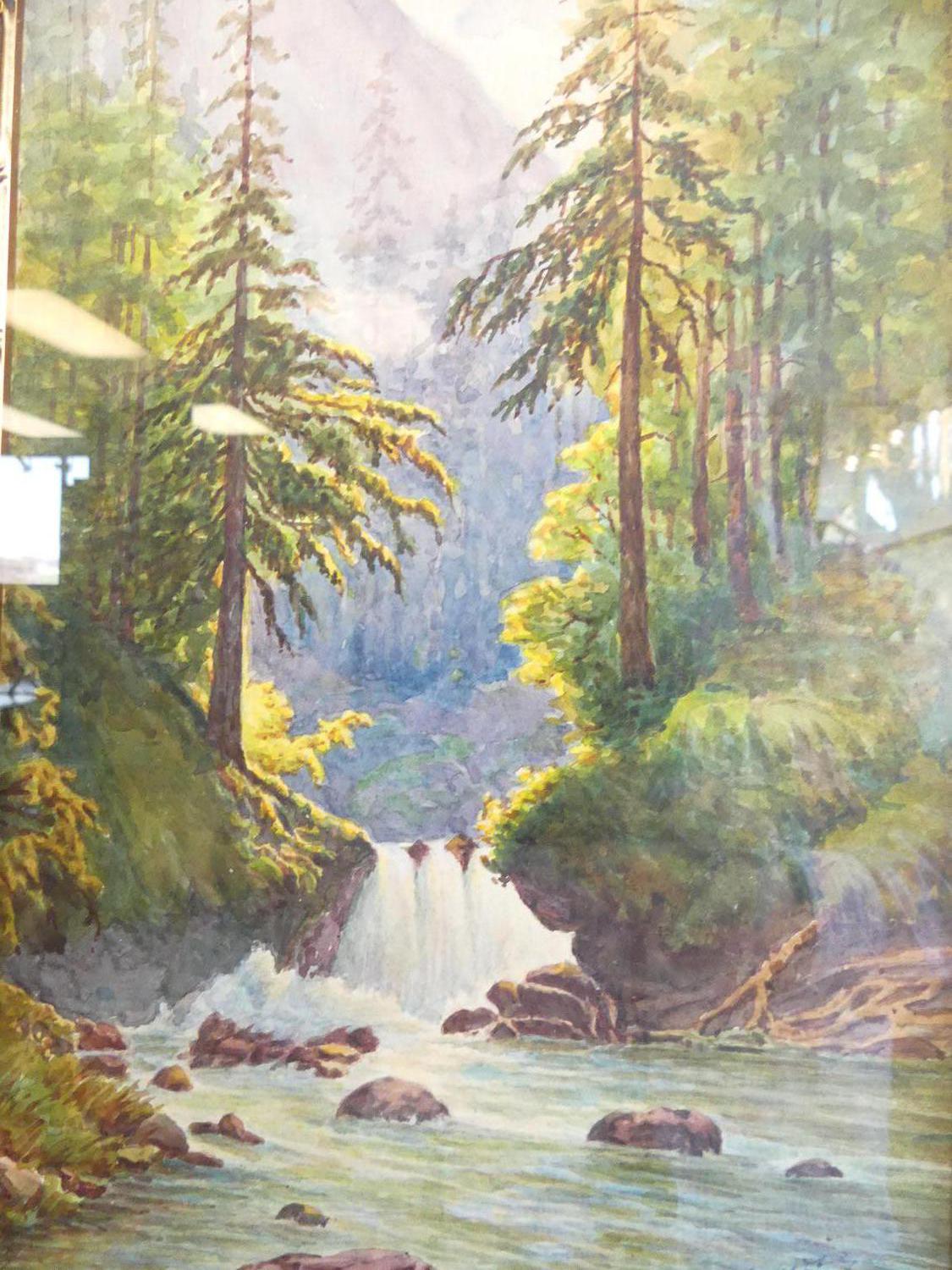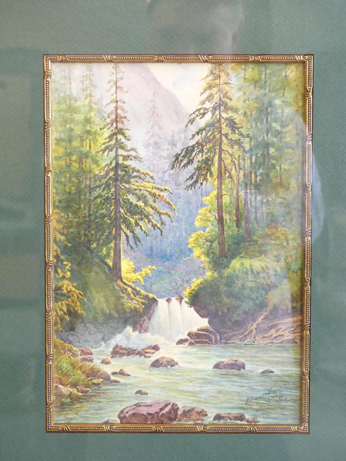 e. lewis, d.1915, watercolour, 13" x 8 1/2", "forest river scene"