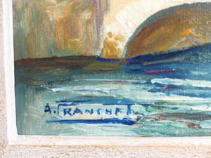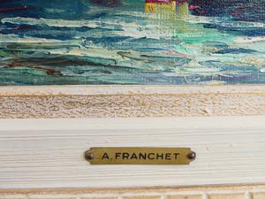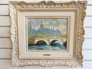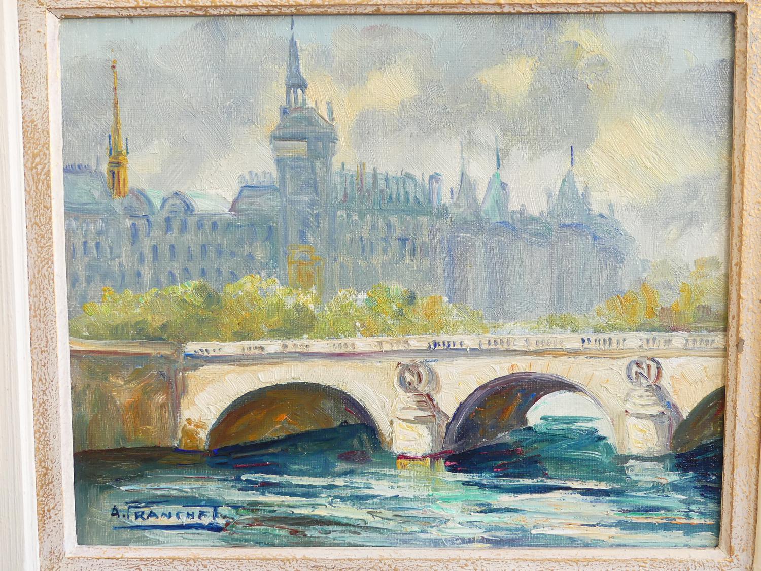 andre franchet, oil on canvas, 9" x 10 1/2", "paris scene"
