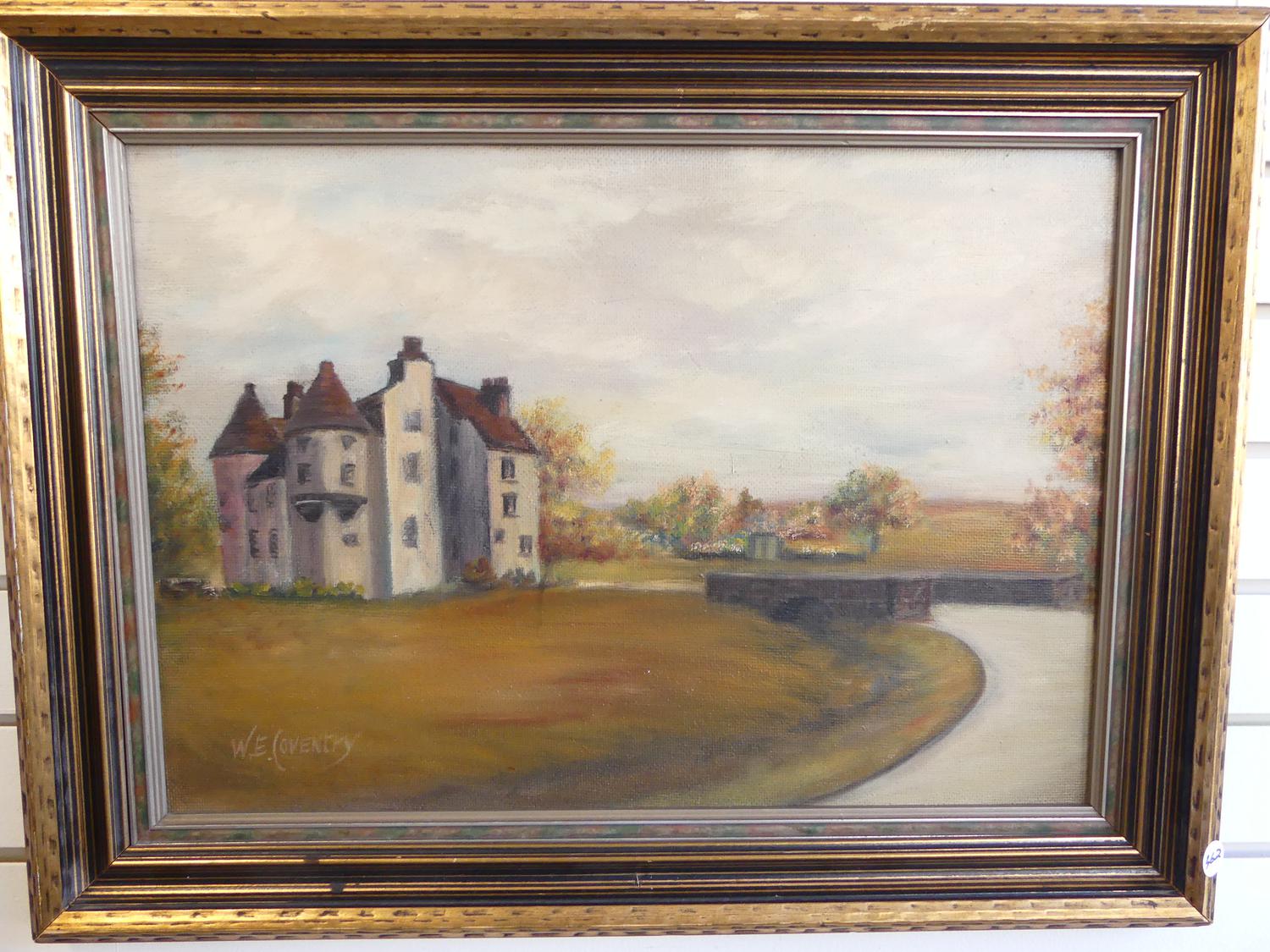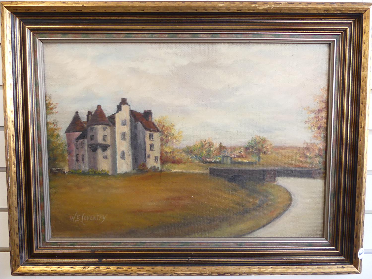w. e. coventry, oil on board, 14" x 20", "scene with country house"