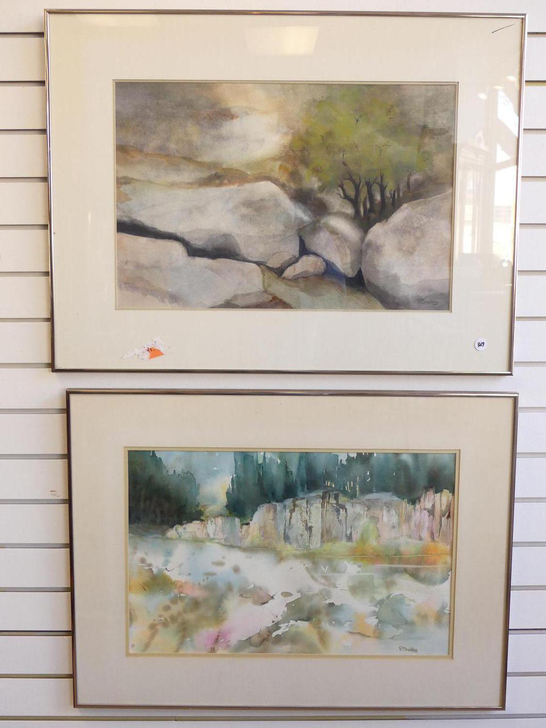 phyllis irving, two watercolors, 14" x 21" and smaller, "dawning and the old quarry"