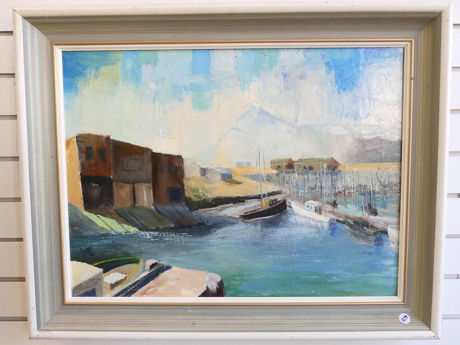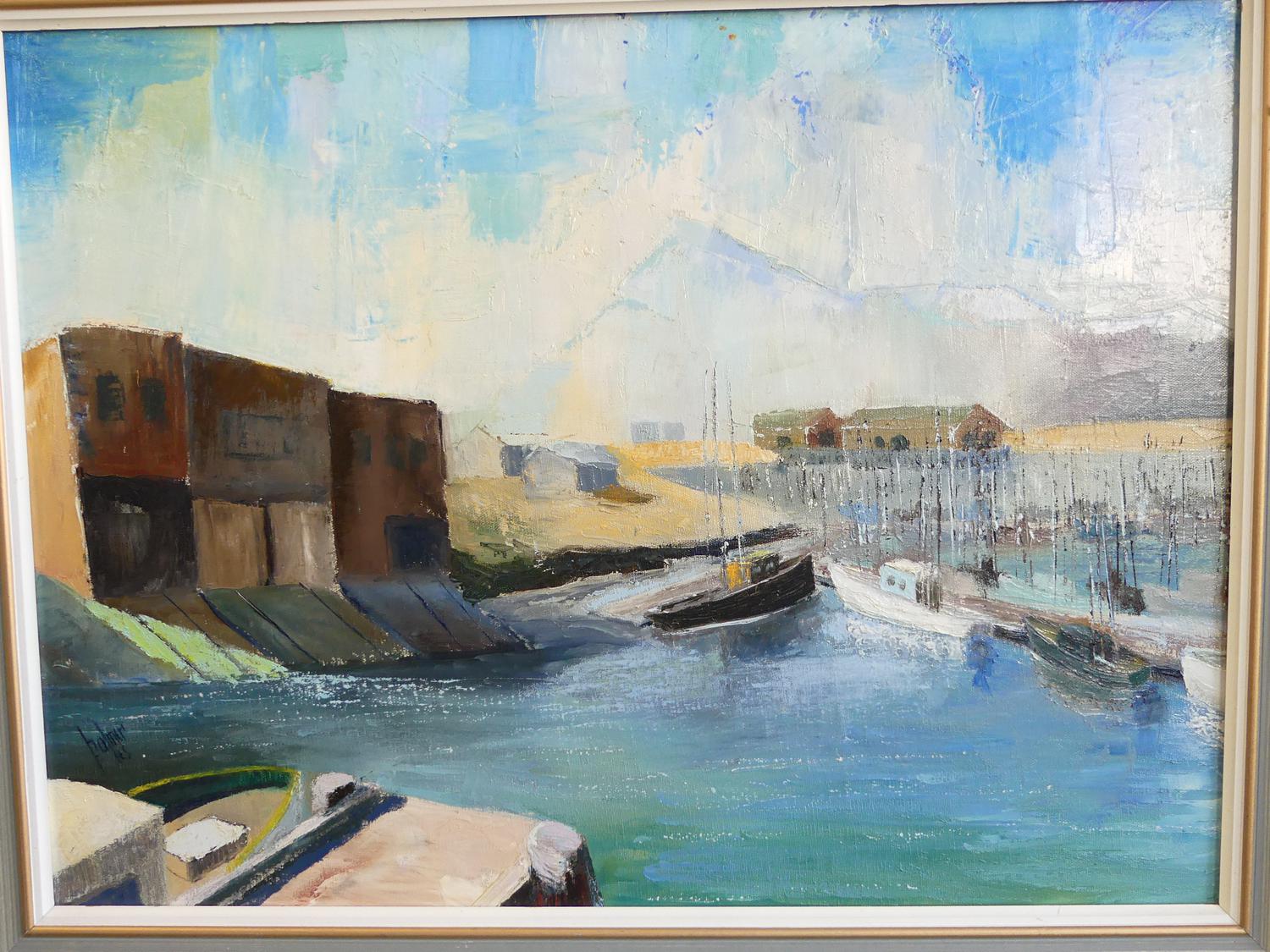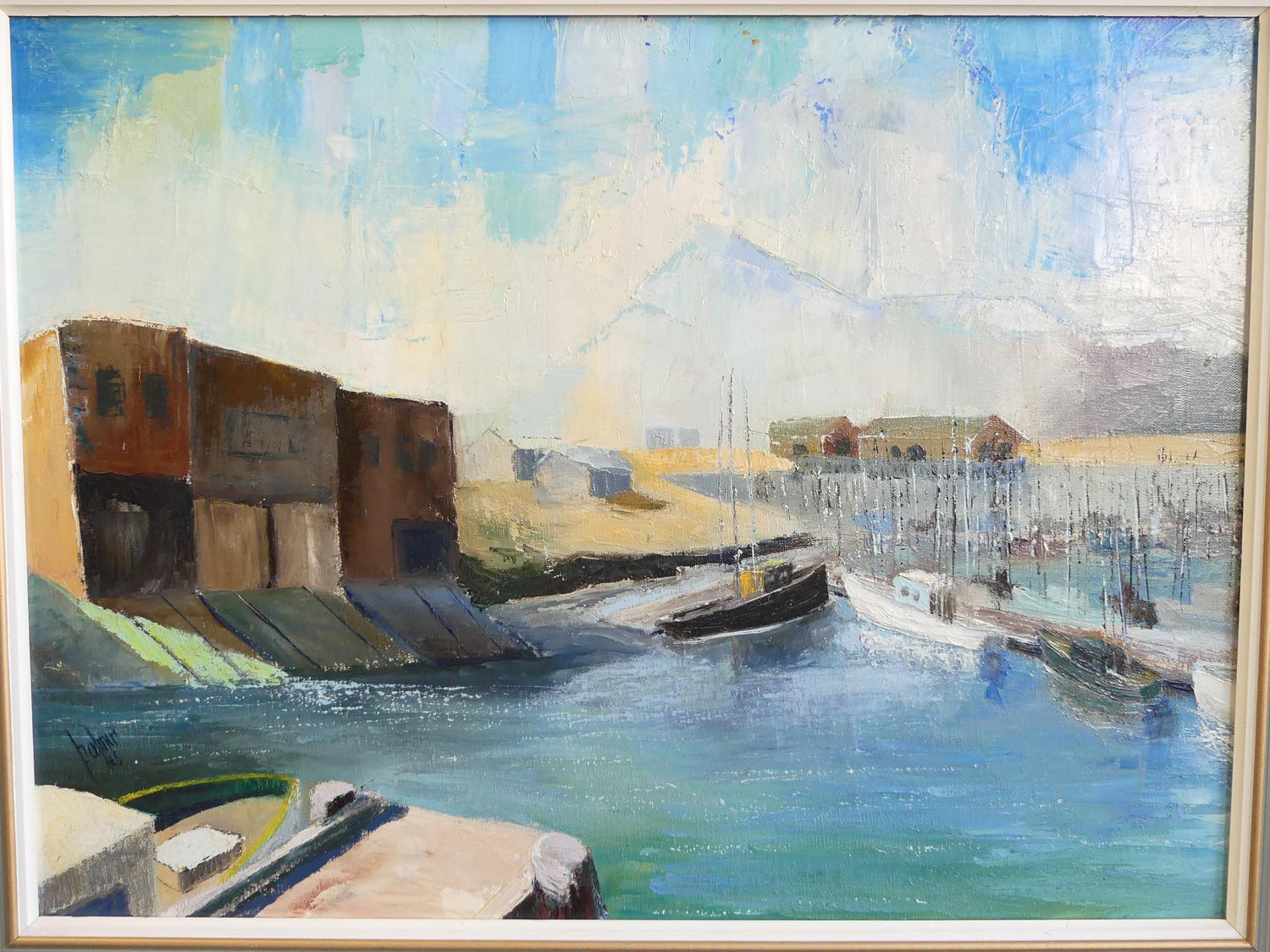 les palmer, oil on canvas, 18" x 24", "harbour scene"