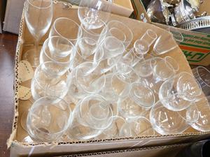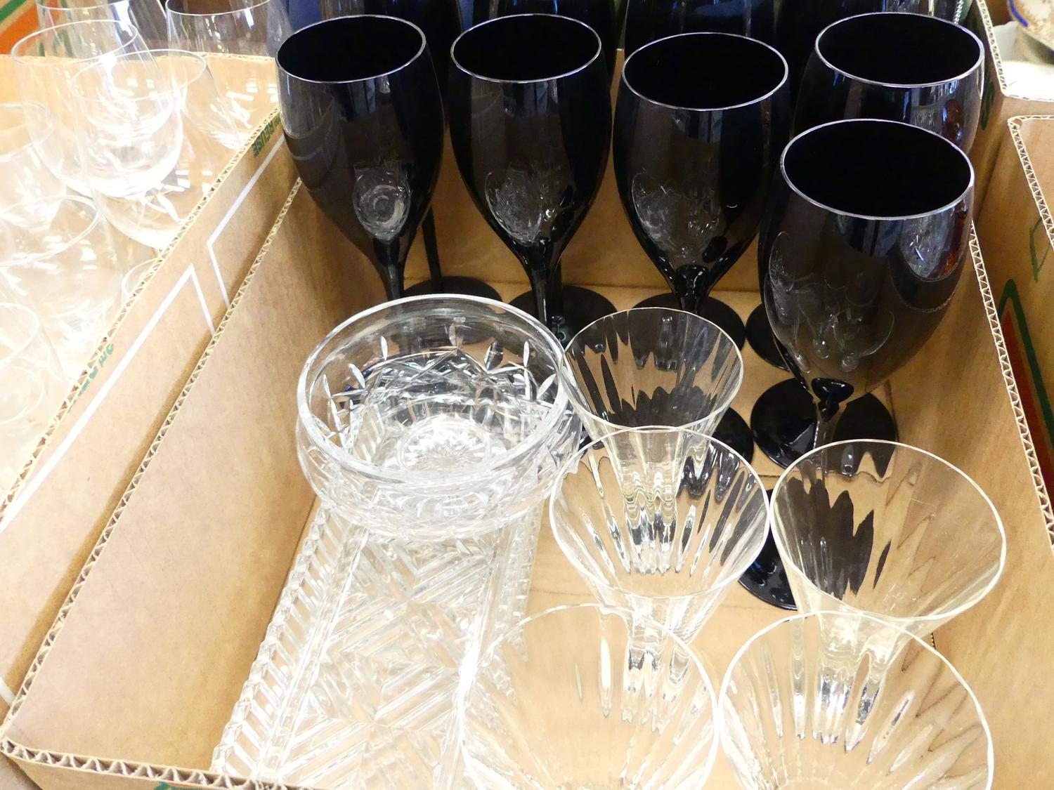 9 black glass white wine stemware with 5 martini glasses and other stemware
