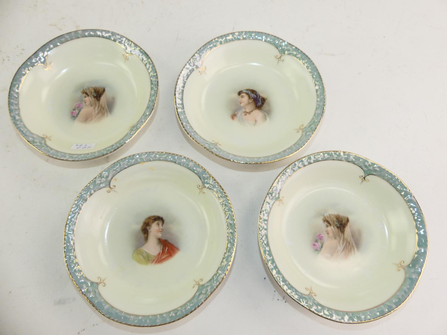 set of four german portrait dishes, diameter 5"