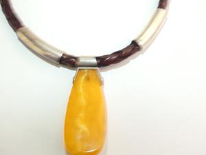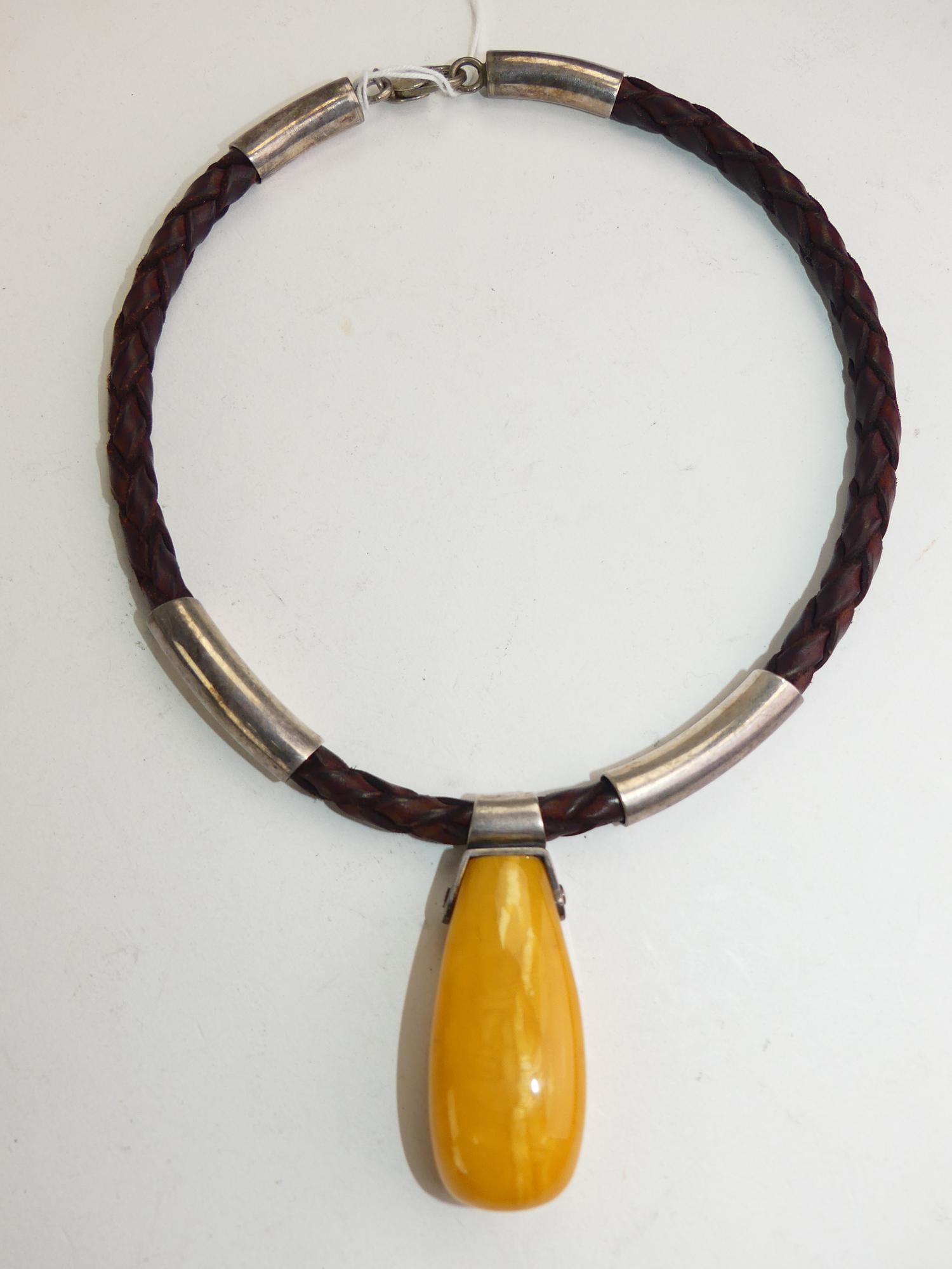 sterling silver leather baltic amber pendant necklace, collar
