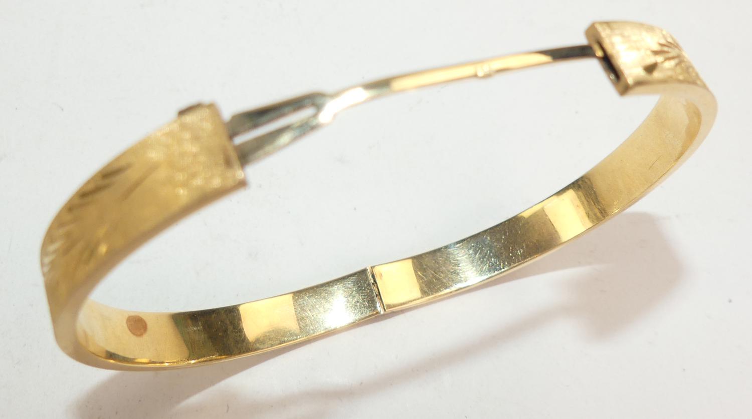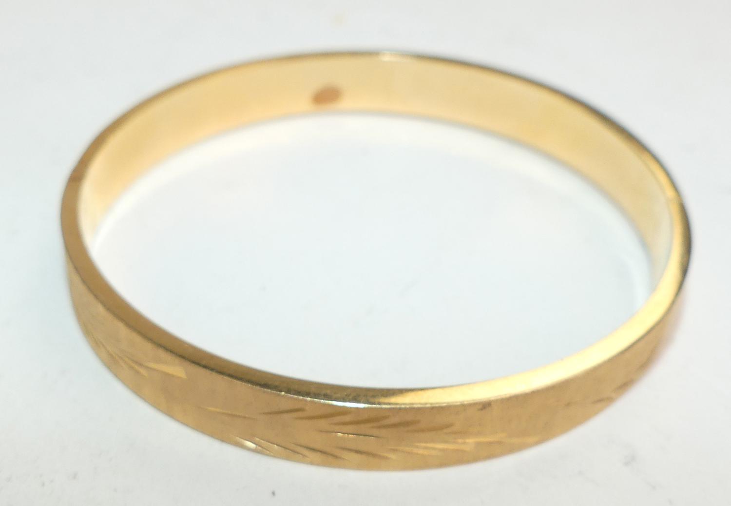 14k gold etched bangle, weighing approx 11.0 grams, 2 1/8" across diameter