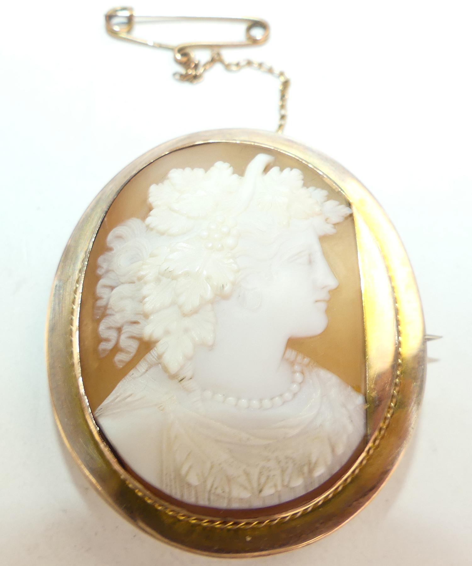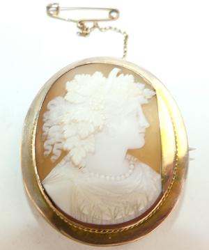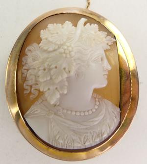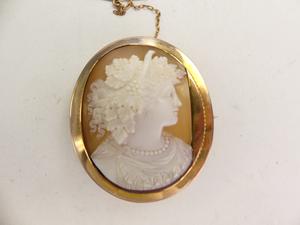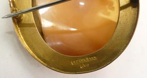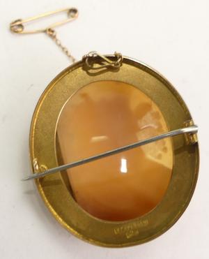 victorian 9ct stevenson signed shell cameo brooch, ht 1 7/8", australia