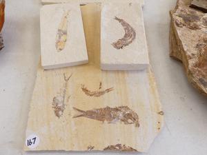 six fossil fish specimens, kemmerer wyoming, 10 1/2" and smaller