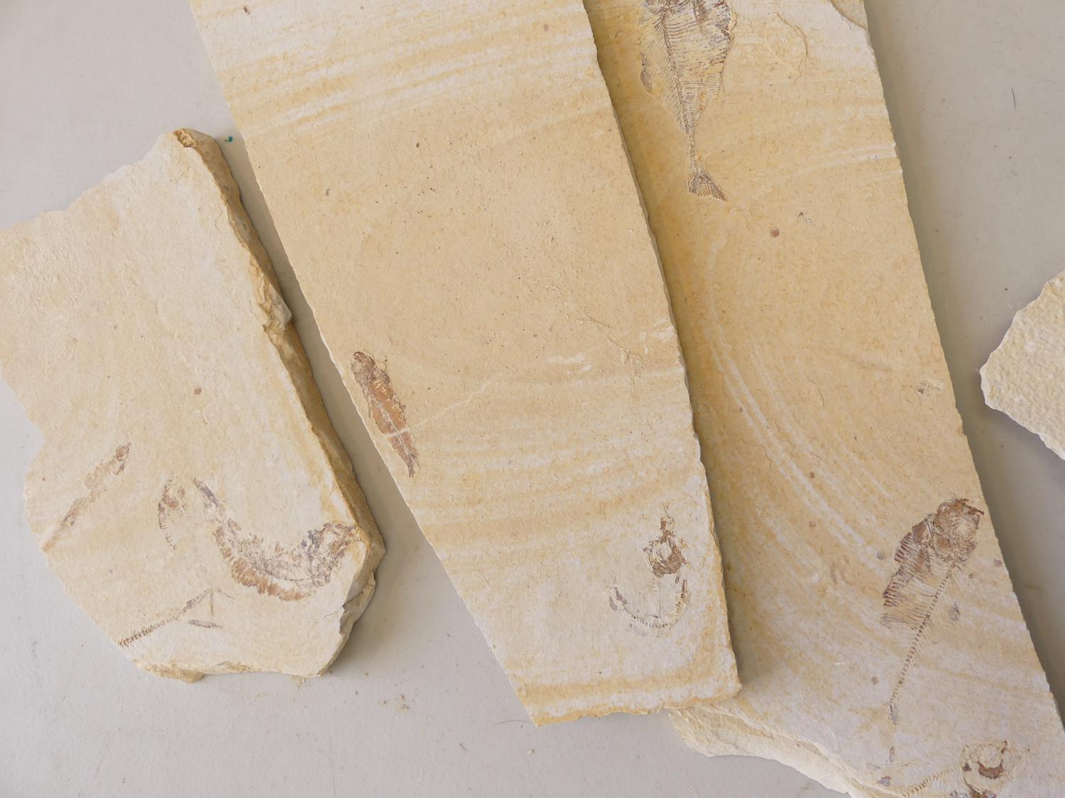 five fossil fish specimens, kemmerer wyoming, 13" and smaller
