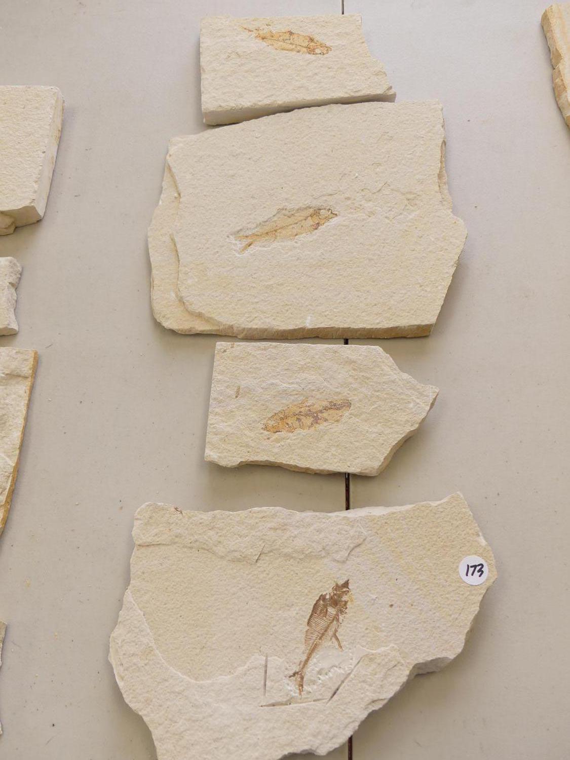 four fossil fish specimens, kemmerer wyoming, 10 1/2" and smaller