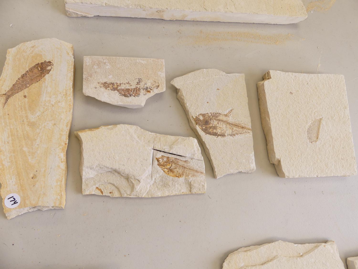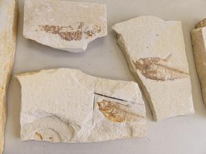 five fossil fish specimens, kemmerer wyoming, 10" and smaller