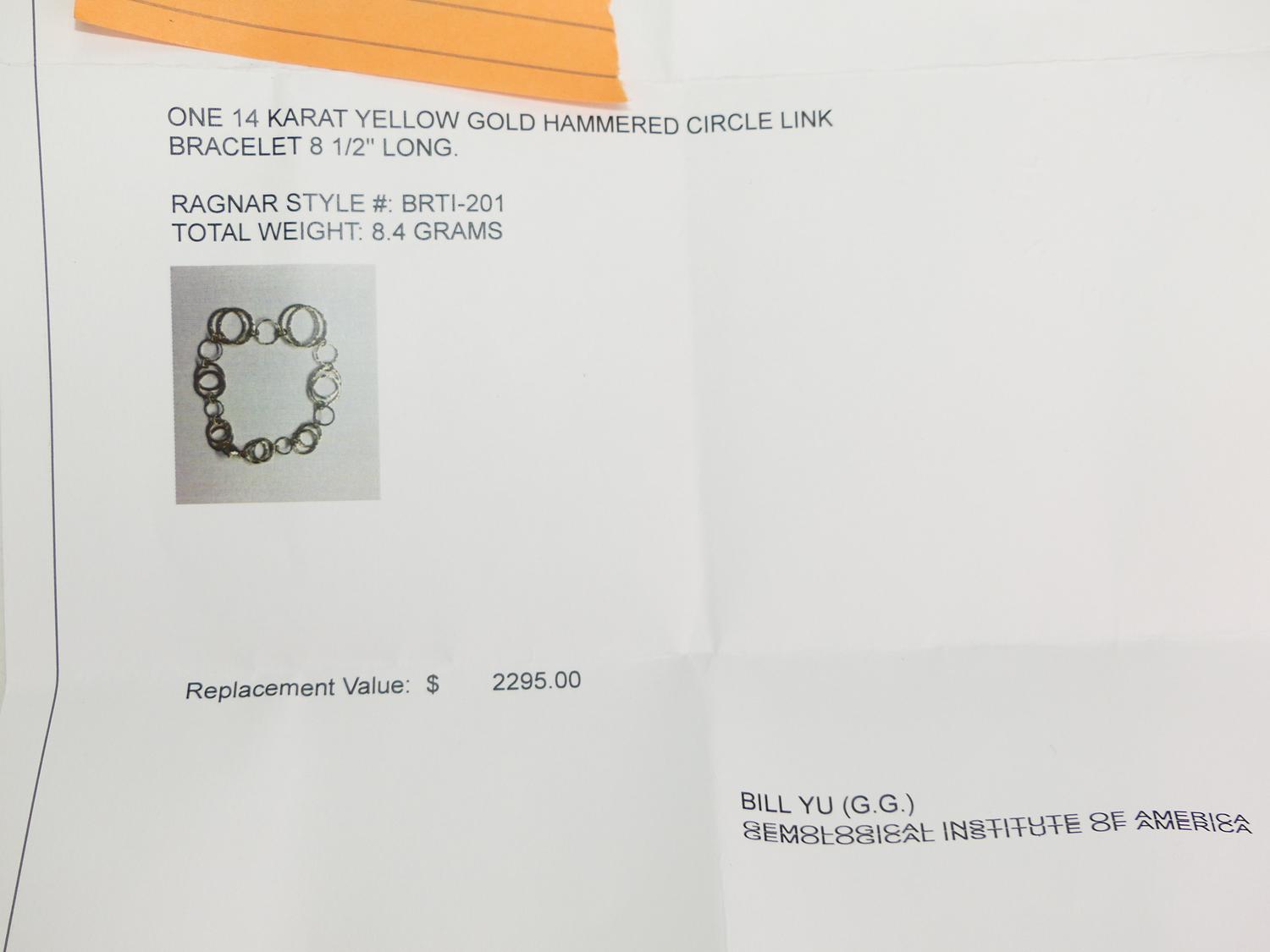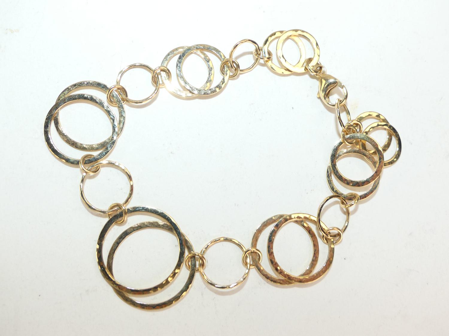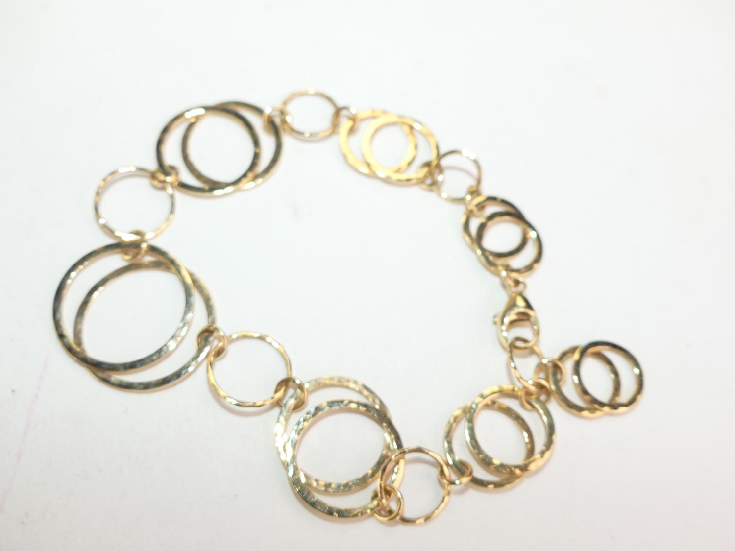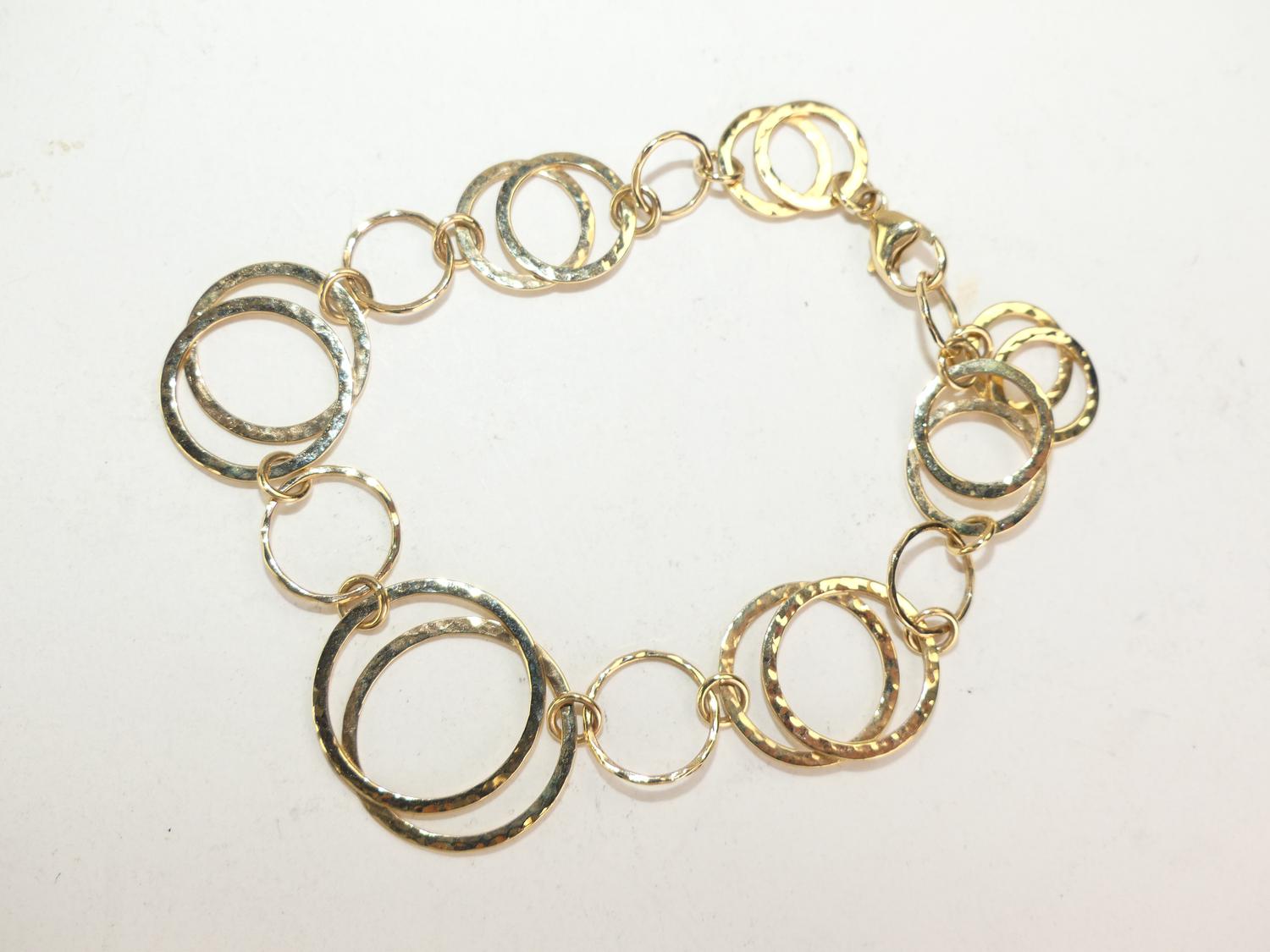 14k gold hammered circle link bracelet, ragnar, 8 1/2", weight 8.4 grams